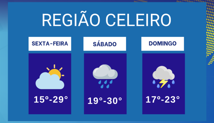 A sexta-feira (24) marca o início de um fim de semana de tempo instável na região. Segundo a previsão meteorológica, o dia será de temperaturas entre 15°C e 29°C, com céu parcialmente nublado e formação de nuvens mais carregadas ao longo da tarde e da noite.