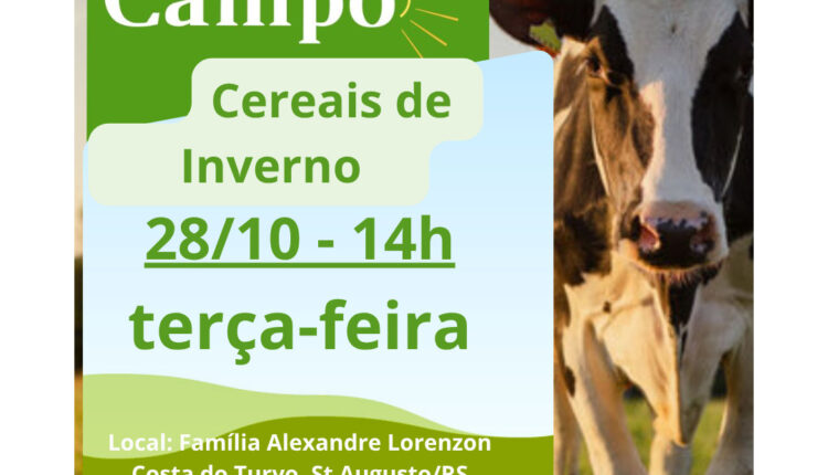 Produtores rurais da região terão uma oportunidade de conhecer novas tecnologias e cultivares de cereais de inverno durante o Dia de Campo, que será realizado na próxima terça-feira, 28 de outubro, às 14h, na propriedade da Família Alexandre Lorenzon, localizada em Costa do Turvo, em Santo Augusto.