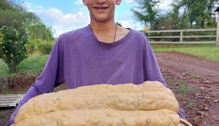 Na localidade de Costa do Turvo, o jovem agricultor Carlos Eduardo P. dos Santos colheu uma abóbora com cerca de 35 quilos, resultado que chamou a atenção pela qualidade e tamanho do fruto. Carlos e sua família têm se destacado na produção e comercialização de hortaliças, atividade que vem se consolidando como uma importante fonte de renda.