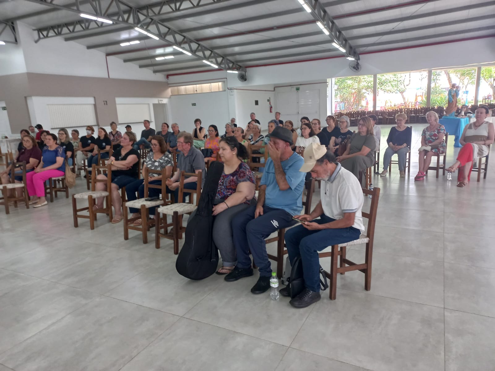 O 12º encontro do Projeto Entusiasmo reuniu participantes na tarde desta segunda-feira para uma programação marcada pela fé, acolhimento e histórias de superação. A atividade iniciou com uma bênção especial conduzida pelo cônego Jocemar Fontana, seguida pelo emocionante depoimento de Dirceu Marinho Bueno, paciente que compartilhou sua trajetória após enfrentar um glaucoma.