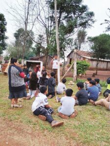 Um dia antes da comemoração, os alunos dos Anos Iniciais da Escola Indígena de Ensino Fundamental Marechal Cândido Rondon tiveram a honra de visitar Kujá para uma conversa enriquecedora. Foi uma experiência esclarecedora que proporcionou a todos um entendimento mais profundo da importância dessas tradições e do papel fundamental de Charque na comunidade. Esse encontro não apenas fortaleceu o vínculo dos jovens com suas raízes culturais, mas também inspirou a continuidade dessa herança valiosa.