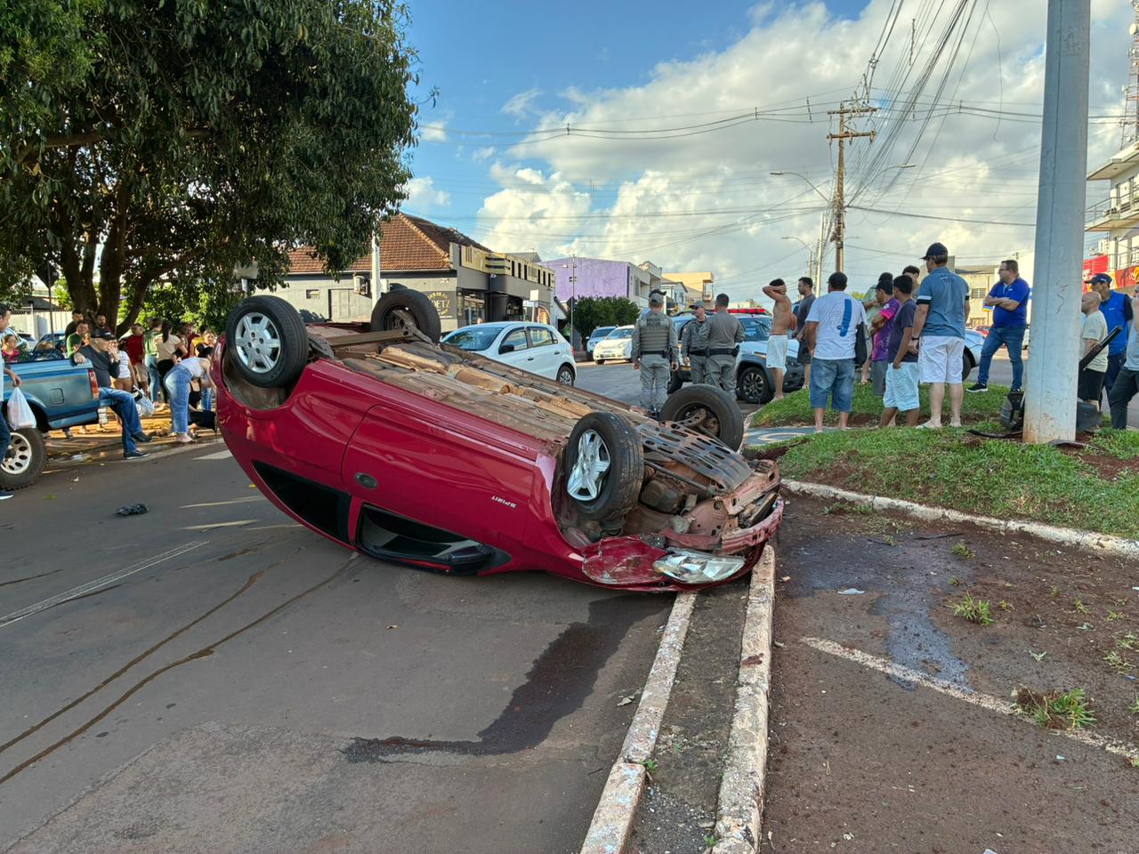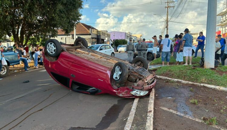 Um acidente de trânsito foi registrado na tarde desta segunda-feira (3) no entroncamento da Avenida do Comércio com a Rua Vicente Silva, em Santo Augusto. A colisão envolveu um Chevrolet Celta e um Volkswagen Gol, que seguiam no sentido Centro–Bairro. Devido ao impacto, o Celta acabou capotando.
