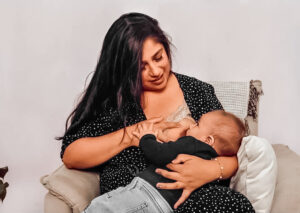 No entanto, apesar de ser um ato de amor e cuidado, muitas mulheres enfrentam dificuldades nos primeiros dias de vida de seus filhos. A pega no peito pode ser dolorosa e triste até que se ajuste ao ritmo ideal. A frustração de não conseguir alimentar o filho pode se transformar em culpa, principalmente para as mães de primeira viagem. Foi o caso de Mariele Saldanha, que teve seu primeiro filho, Théo, em novembro de 2021. Ela explicou que manteve a amamentação exclusiva até os seis meses e depois continuou até que seu bebê completasse dois anos. Para Mariele, foi um desafio, pois sofreu fissuras e hiperlactação – produção excessiva de leite materno, ultrapassando a quantidade que o bebê consegue mamar. “Foram várias noites de choro e dor, mas sabia que era importante para o desenvolvimento dele. Então procurei aprender a fazer a pega melhor e consegui”, destacou.
