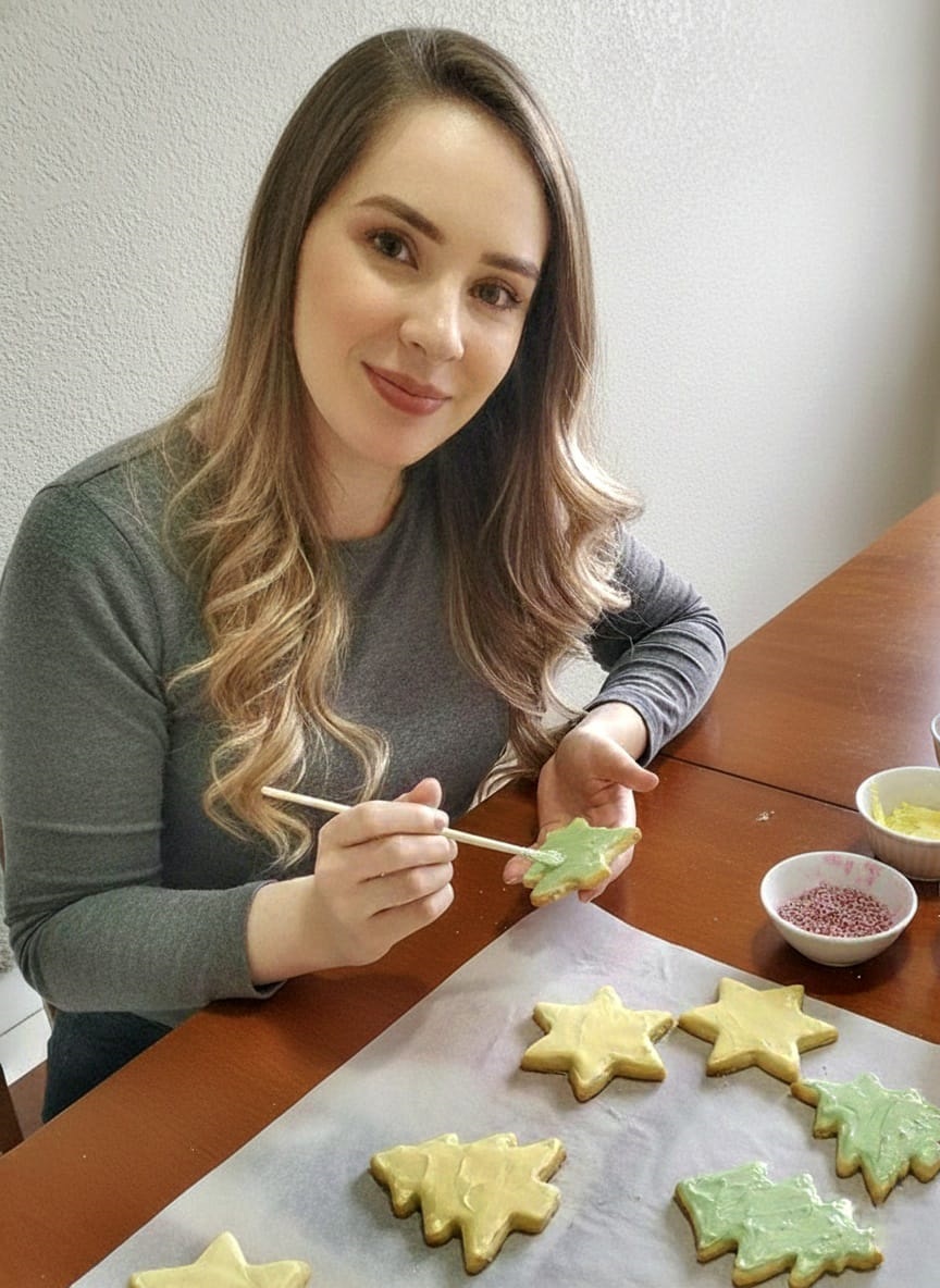 Ao se casar, ela fez questão de manter o costume. “Desde o primeiro ano, quis fazer em casa, porque para mim não existia Natal sem bolacha pintada. Já fazia parte das festas”, afirma. A tradição ganhou ainda mais força com o nascimento da filha. “Queria passar isso para ela também. Desde que tinha alguns meses, ela já participava da produção”, conta.