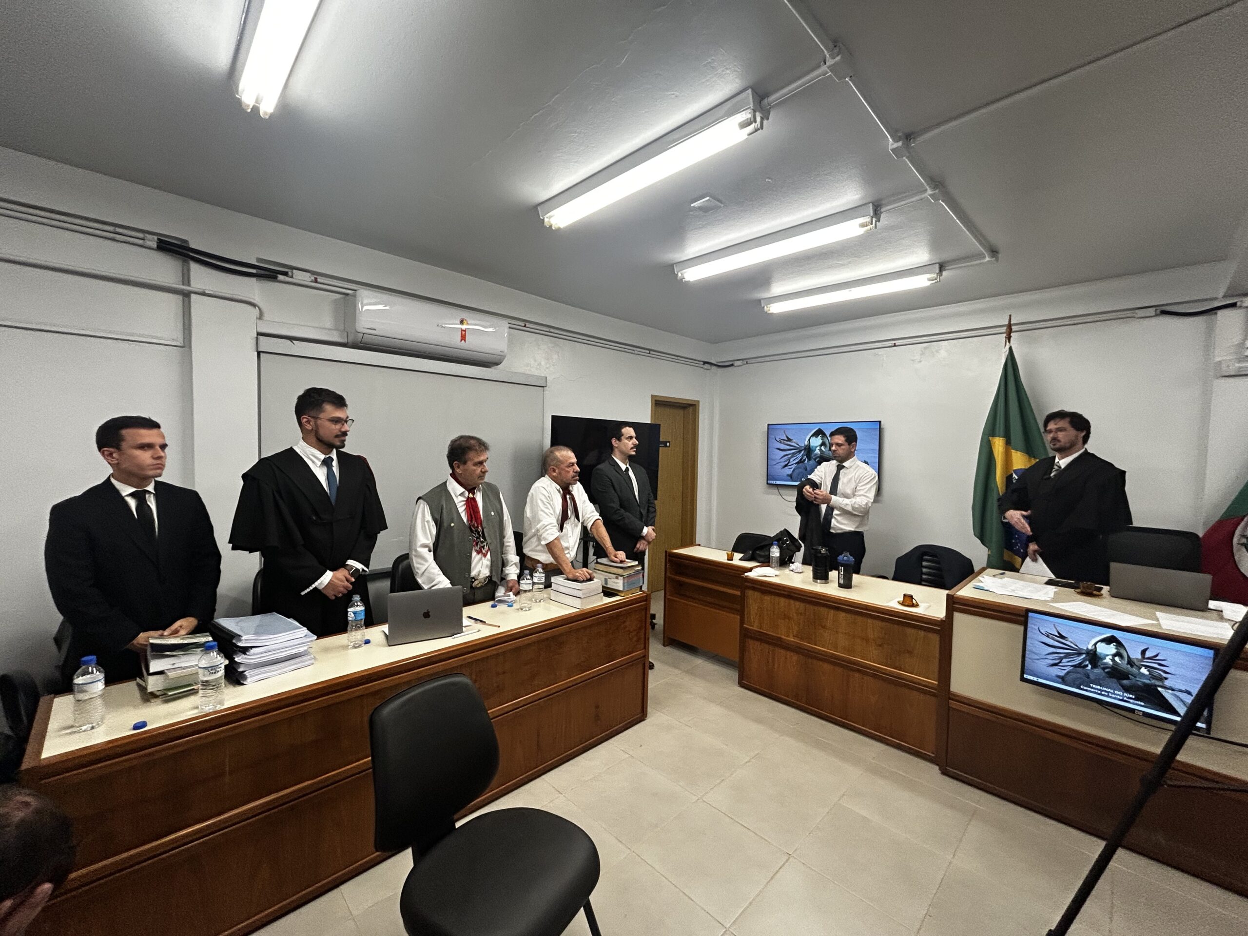 Durante a sessão, o processo foi apresentado a sete jurados, cidadãos da comarca responsáveis por analisar as provas e decidir, por maioria de votos e de forma secreta, o desfecho do julgamento.