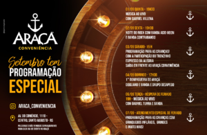 Até o próximo dia 07 de setembro, diversas bandas passarão pelo local, fazendo a animação do público presente, além das bebidas e petiscos que você já encontra no Araçá.