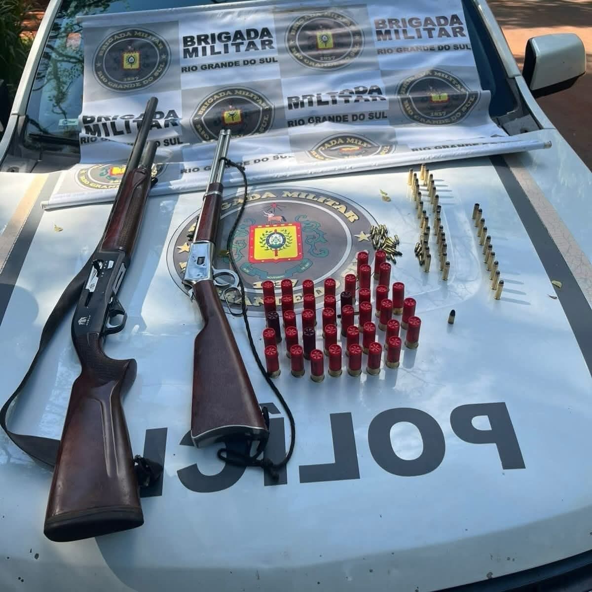 Durante a revista no veículo, os policiais localizaram duas espingardas, além de diversas munições. Diante da situação, o condutor recebeu voz de prisão em flagrante.