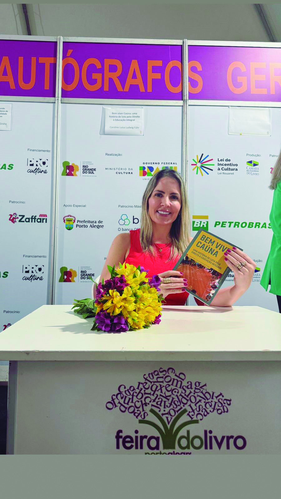 Caroline Luisa Ludwig Führ, autora natural de São Valério do Sul, lançou seu livro Bem Viver Caúna – Uma História de Luta pelo Direito à Educação Integral durante a 70ª Feira do Livro de Porto Alegre. O evento, realizado entre os dias 1º e 20 de novembro, na Praça da Alfândega, foi palco para o lançamento da obra, que aconteceu na terça-feira, 19 de novembro, com sessão de autógrafos da escritora.