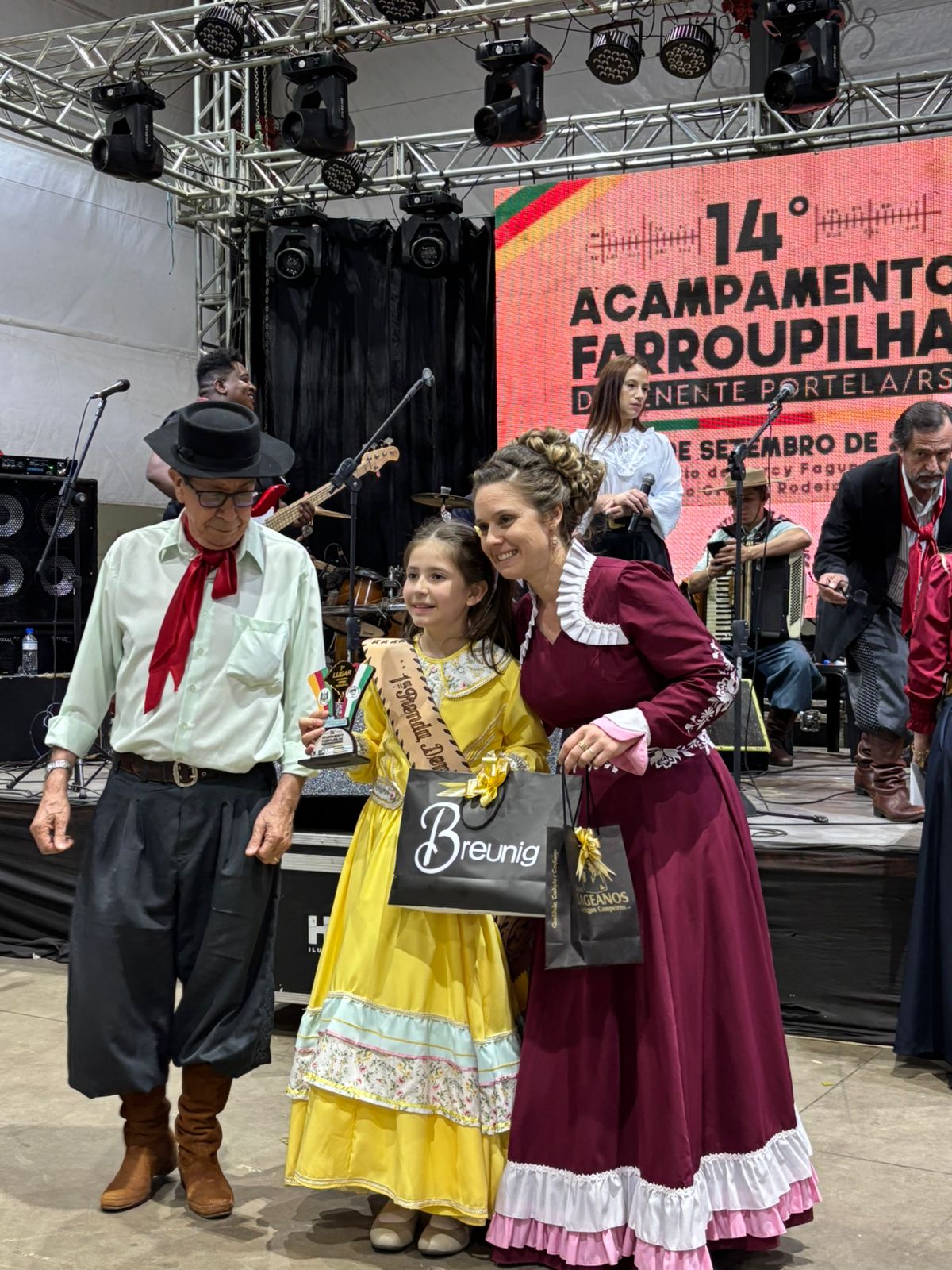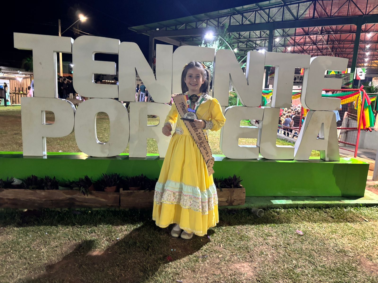 Nossa prenda Dente de Leite, Betina Kiara Lucca dos Santos, venceu mais um concurso tradicionalista e trouxe para Santo Augusto o 1º lugar na categoria mirim do 14º Acampamento e 8º Grito Farroupilha, realizados neste fim de semana em Tenente Portela. Representando o CTG Pompílio Silva, a Escola Ginásio e sua família, Betina emocionou o público ao interpretar a canção “Tropeiro Velho”, de Teixeirinha.