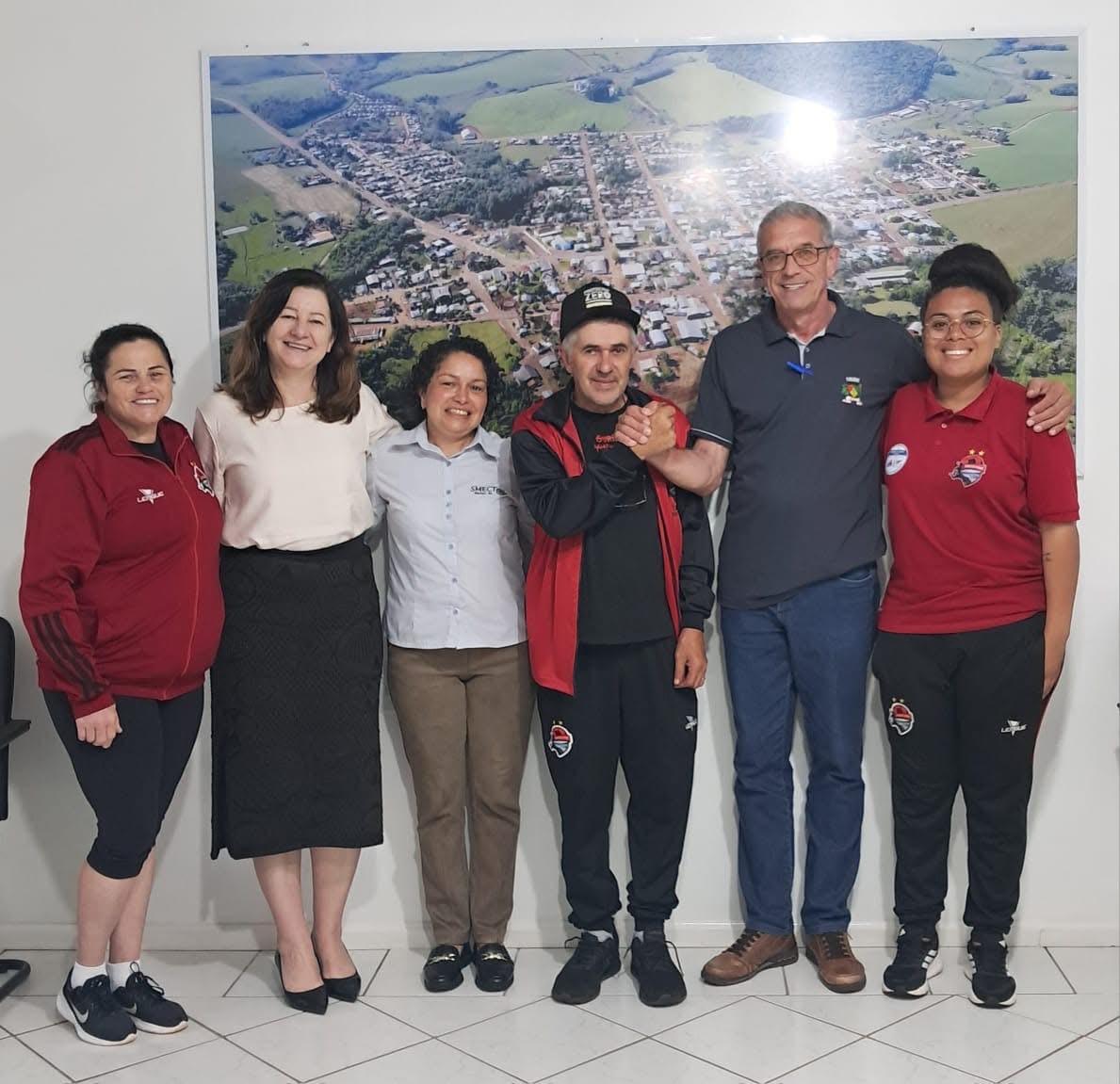 O acordo foi oficializado pelo prefeito Sadi Enrique Della Líbera, pela vice-prefeita Marinês Chiele Balestrin e pela secretária de Educação, Cultura e Turismo, Eliane Ribeiro dos Santos, em encontro que contou com a presença do presidente do projeto, Ildo Scapini, da coordenadora Amanda e da professora e treinadora Janete Aparecida Bones Baldo (CREF 029975-G/RS).