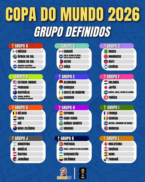 A Fifa realizou nesta sexta-feira (5), em Washington, nos Estados Unidos, o sorteio oficial dos grupos da Copa do Mundo de 2026. A seleção brasileira ficou no Grupo C, ao lado de Marrocos, Escócia e Haiti, e já tem previsão para a estreia no torneio.