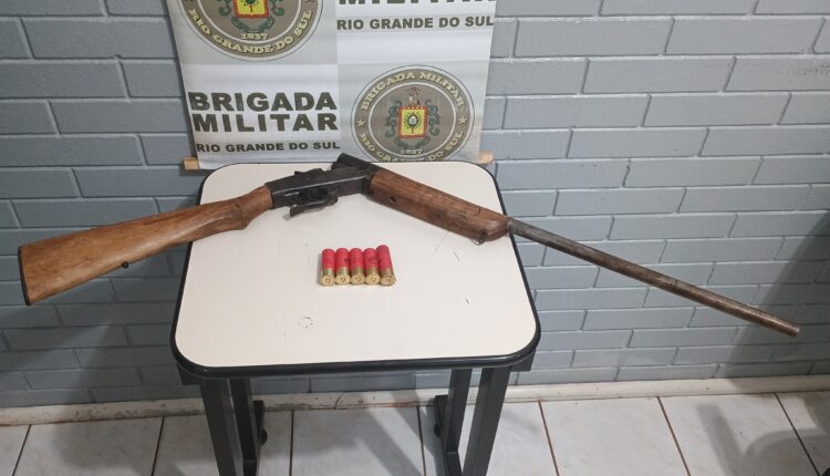 Na madrugada desta sexta-feira, 19 de dezembro, a Brigada Militar, através dos Policiais Miliares do 7°BPM apreenderam uma arma de fogo longa espingarda Cal 12, municiada com um cartucho deflagrado, juntamente com mais quatro munições cal 12 intactas.