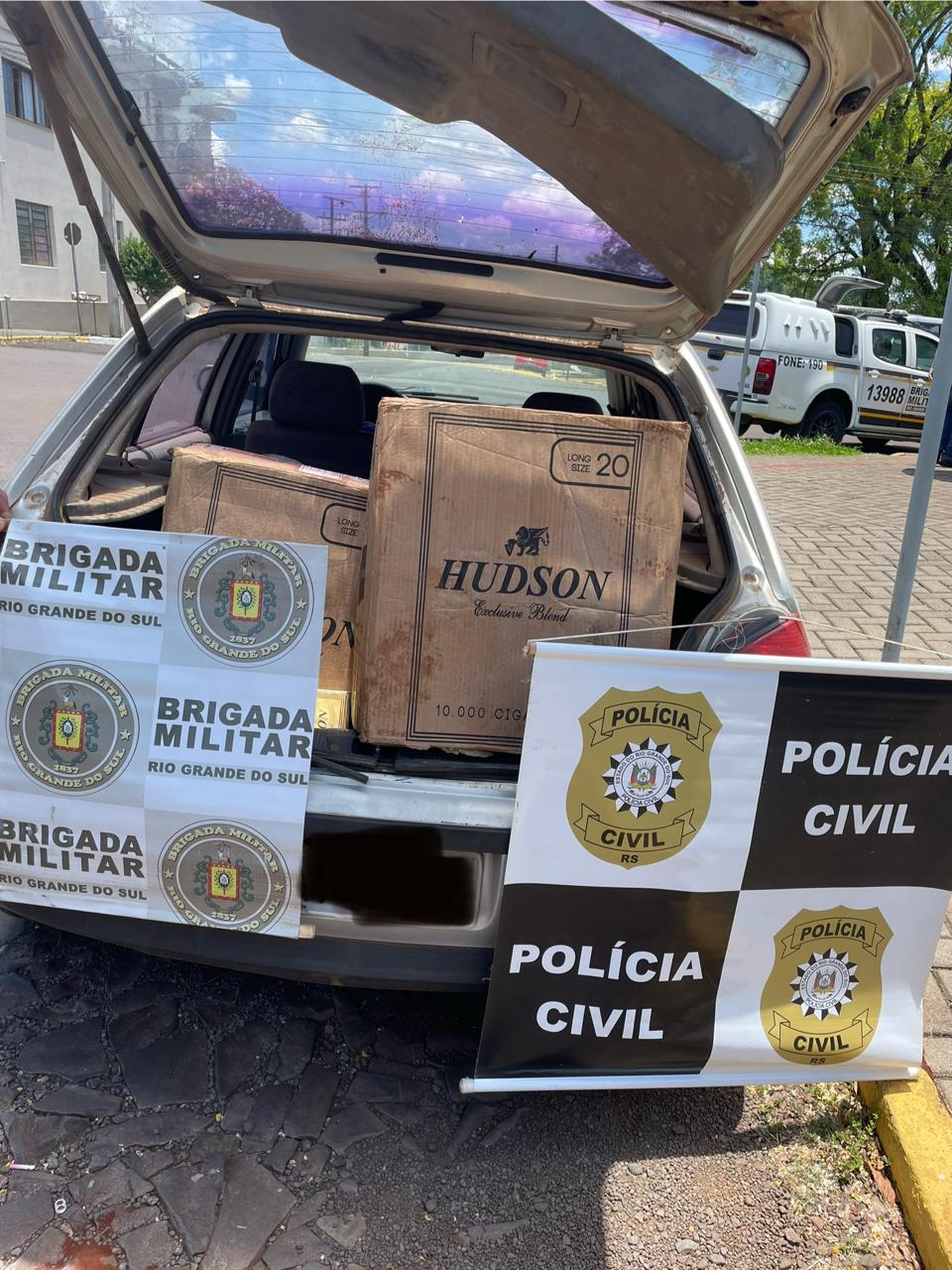 Brigada Militar e Polícia Civil prendem suspeito de contrabando e apreendem carga de cigarros em Esperança do Sul