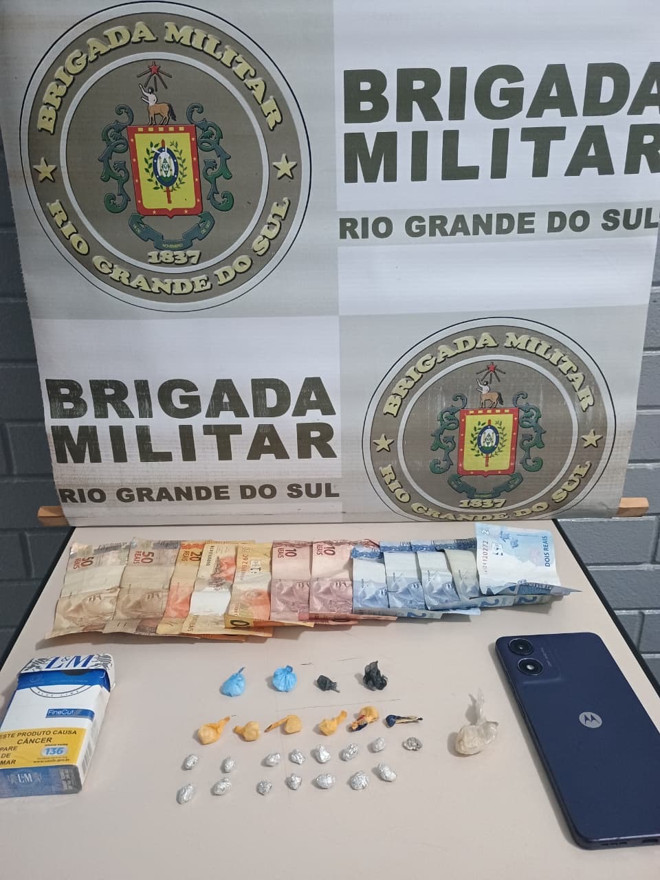 Conforme a Brigada Militar, o suspeito foi flagrado repassando entorpecentes e, ao perceber a aproximação da equipe policial, tentou fugir para o interior de uma residência, resistindo à abordagem.