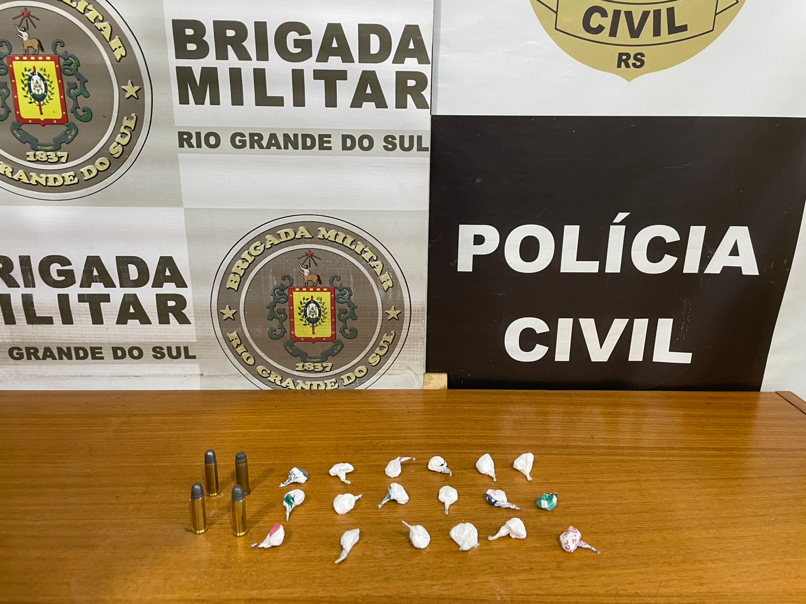 Durante a abordagem a um veículo e aos indivíduos envolvidos, os policiais localizaram 18 buchas de cocaína já fracionadas e prontas para a comercialização, além de quatro munições de calibre .38. No local, um homem foi preso em flagrante e um adolescente acabou apreendido.