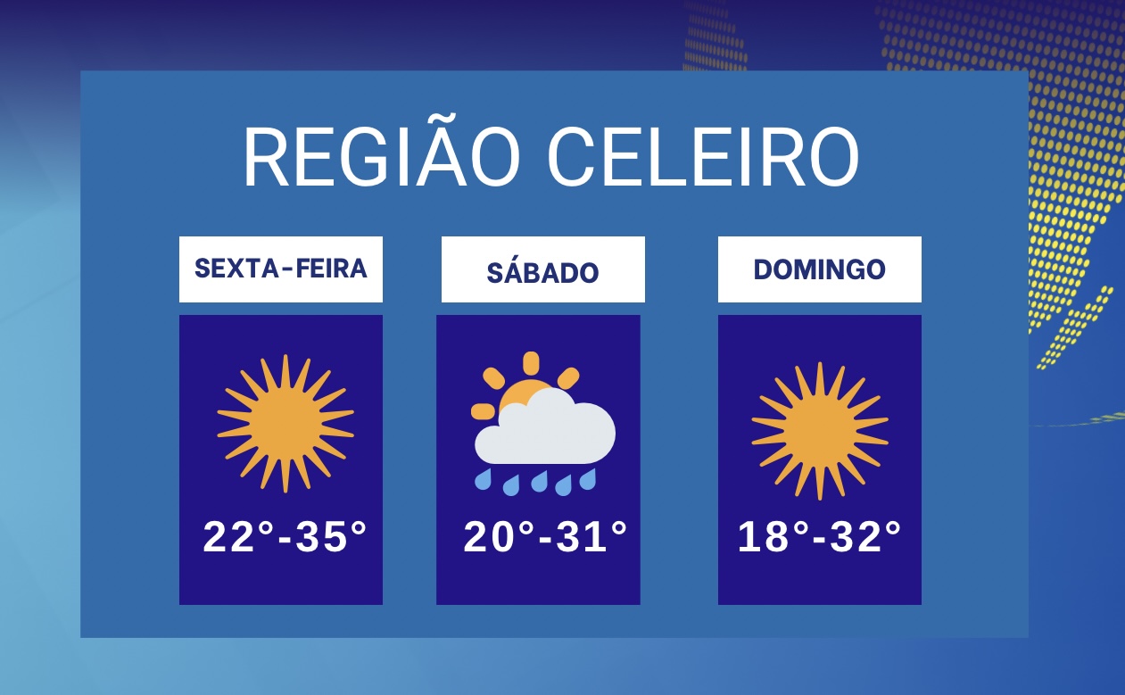 Já no domingo, o tempo volta a ficar estável, sem indicativo de chuva. A mínima prevista é de 18 graus e a máxima pode atingir 32 graus, mantendo a sensação de calor durante a tarde, mas com amanhecer mais ameno.