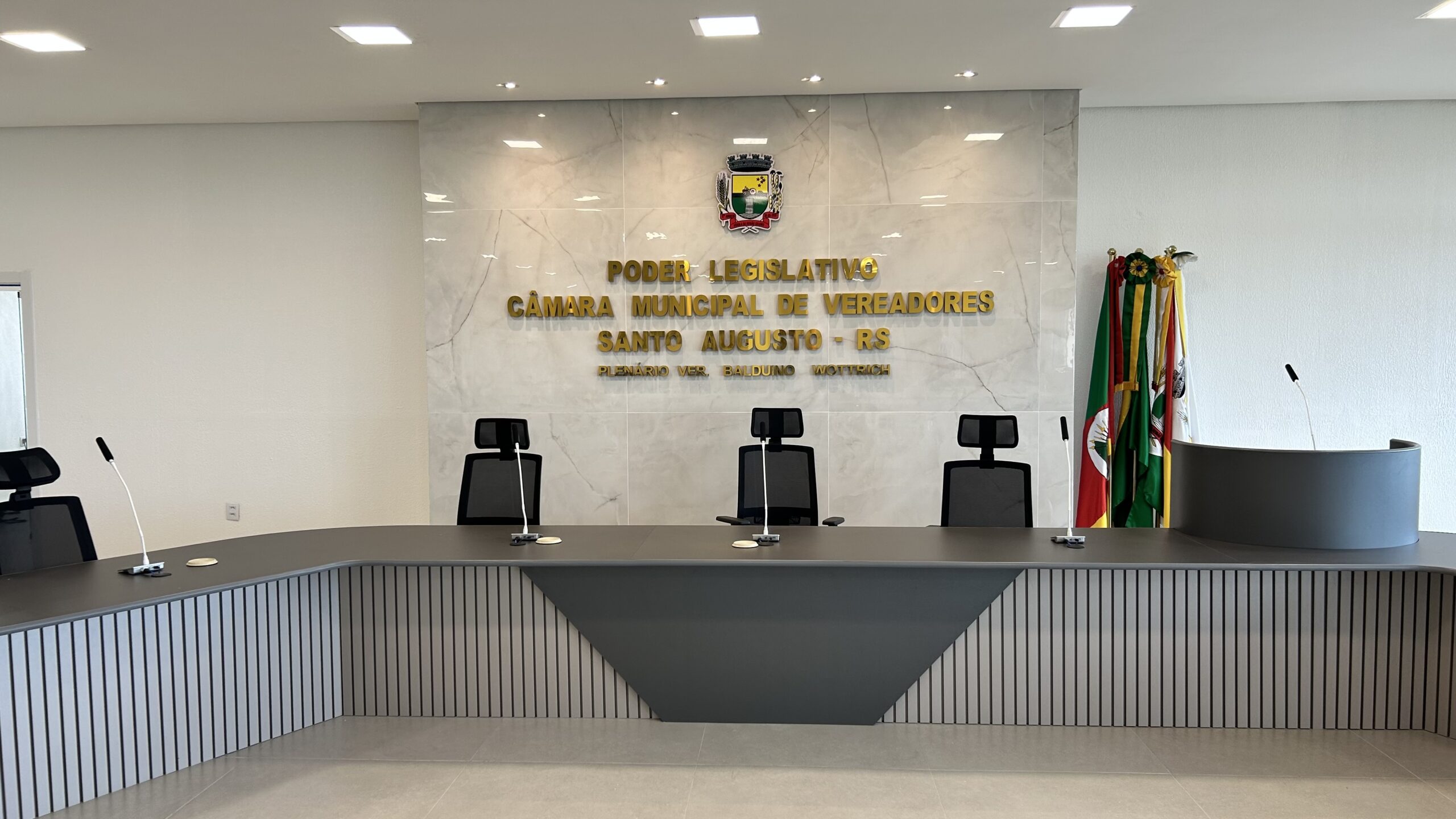 Ocorreu nesta segunda-feira, dia 29, a reinauguração da Câmara de Vereadores de Santo Augusto. Com a solenidade, o Legislativo voltou a funcionar no 4º piso do Centro Administrativo Municipal.