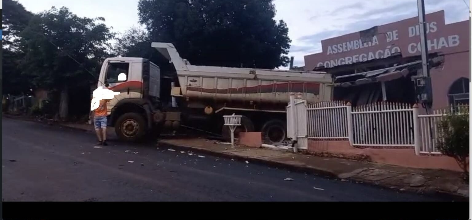 Um caminhão tipo caçamba atingiu uma igreja e uma residência no bairro Nova Esperança em Chiapetta na tarde desta segunda-feira. O acidente causou danos materiais significativos. Ninguém ficou ferido.