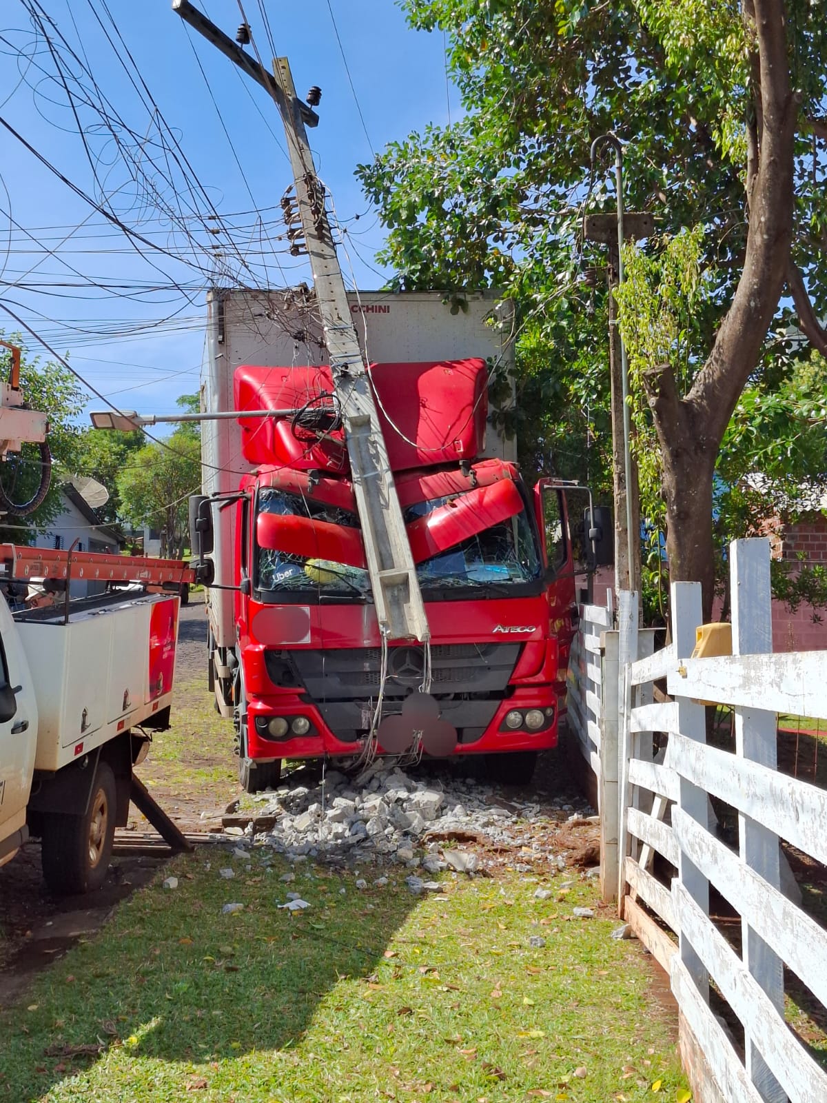 Caminhão desgovernado atinge poste e deixa parte do bairro Glória sem energia em Ijuí