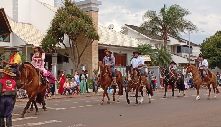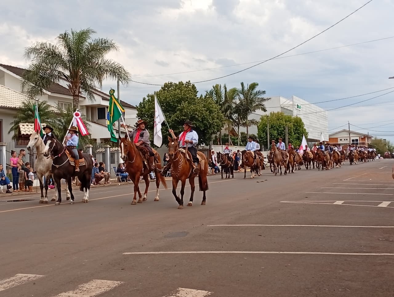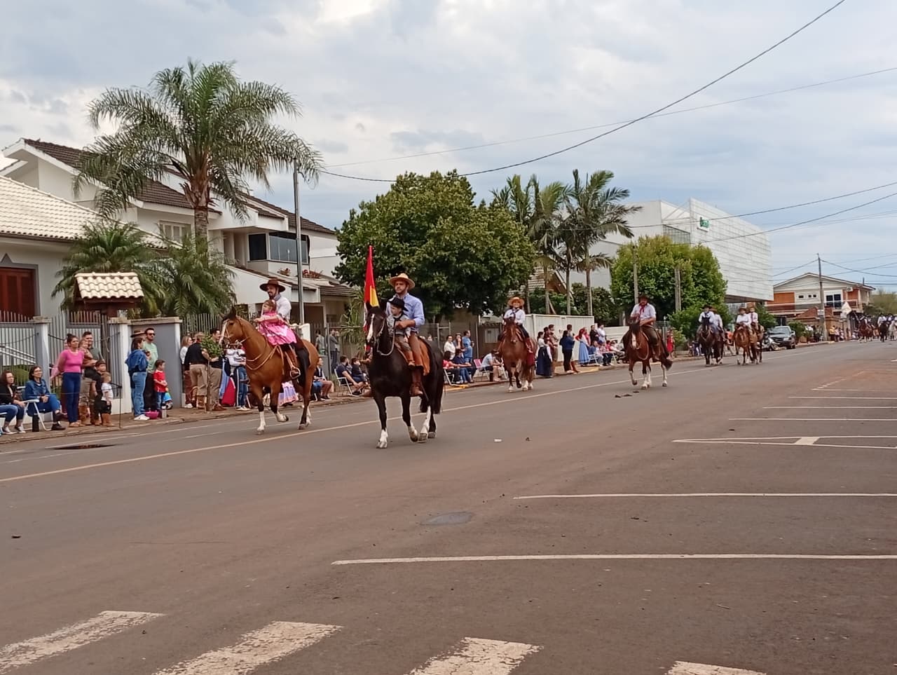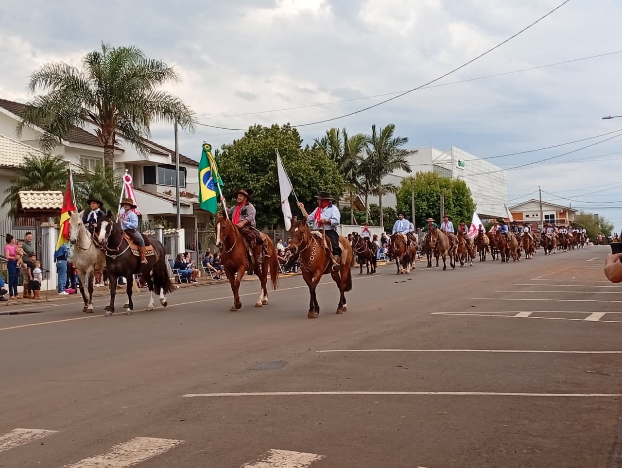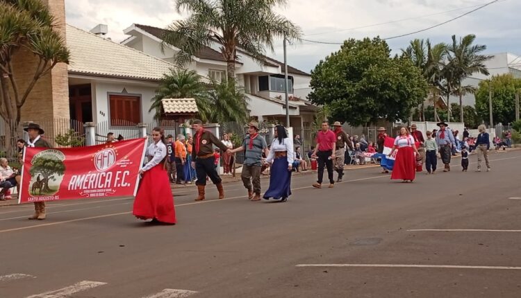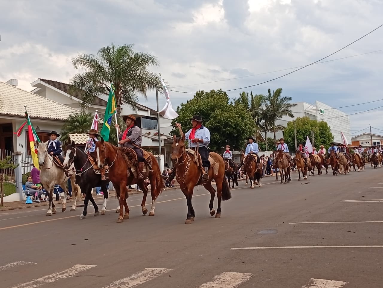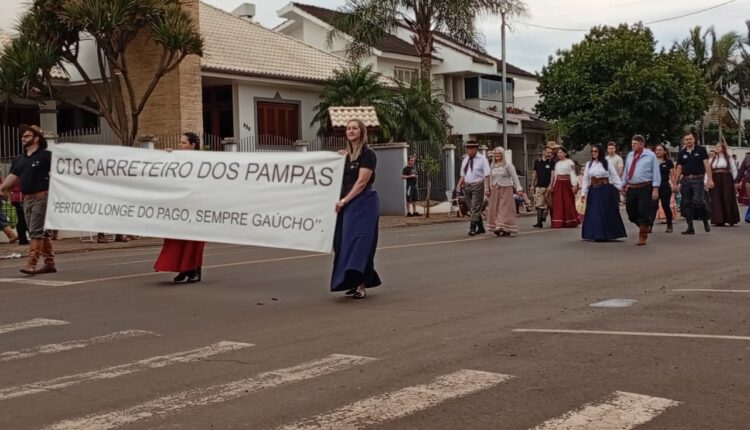 Desfile Tradicionalista encerra Semana Farroupilha em Santo Augusto reunindo comunidade, entidades e empresas na Rua Rio Branco.