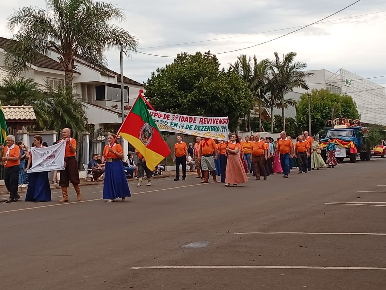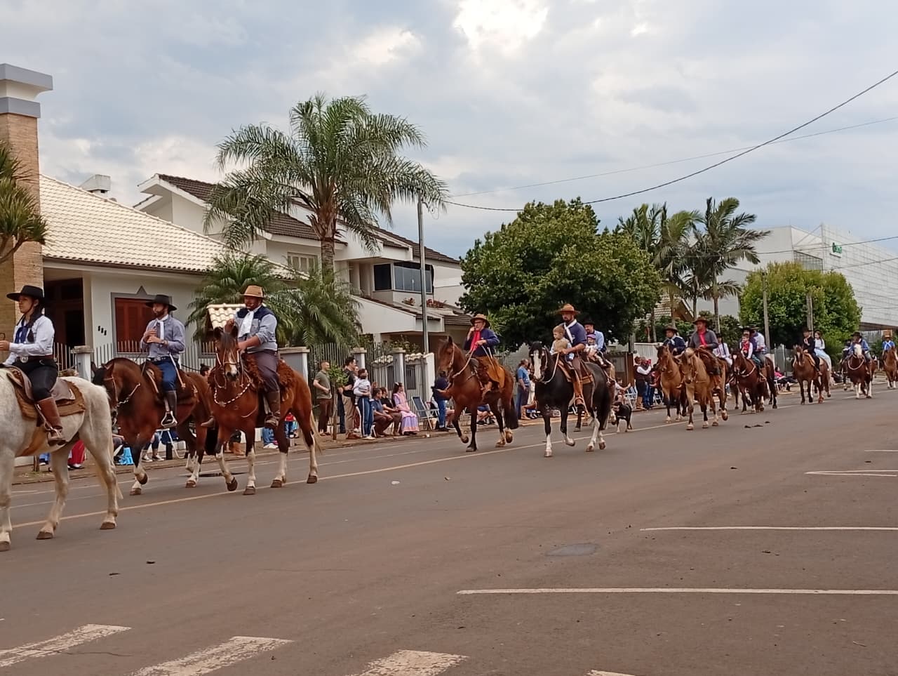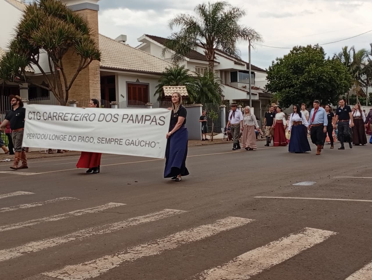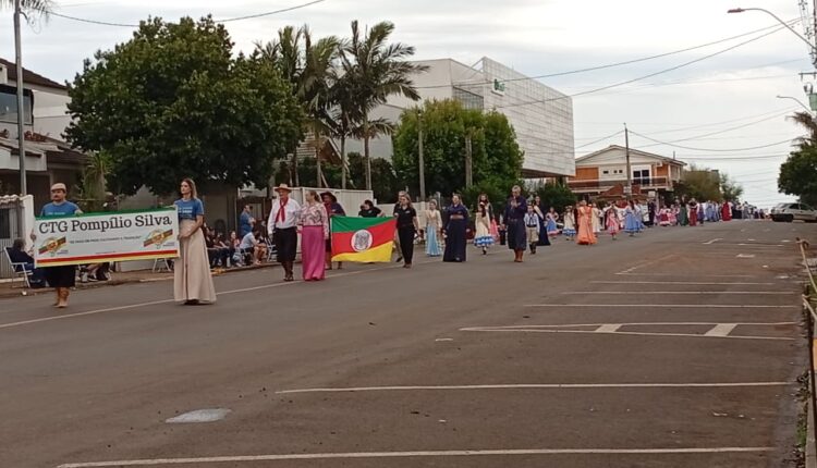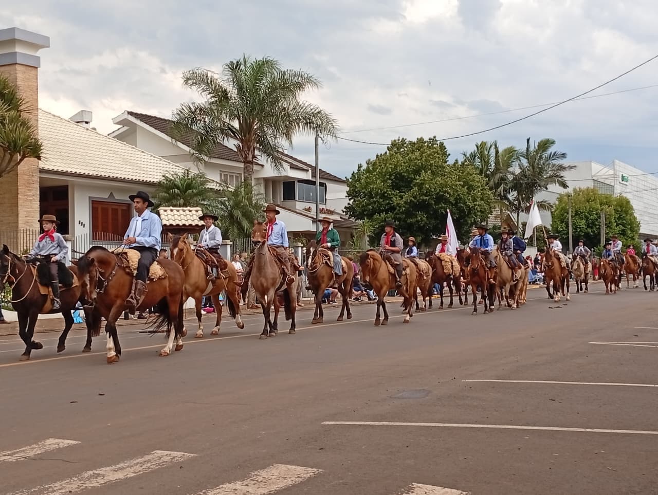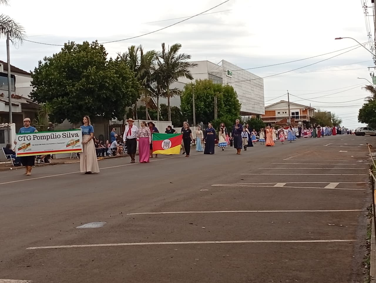 Desfile Tradicionalista encerra Semana Farroupilha em Santo Augusto reunindo comunidade, entidades e empresas na Rua Rio Branco.