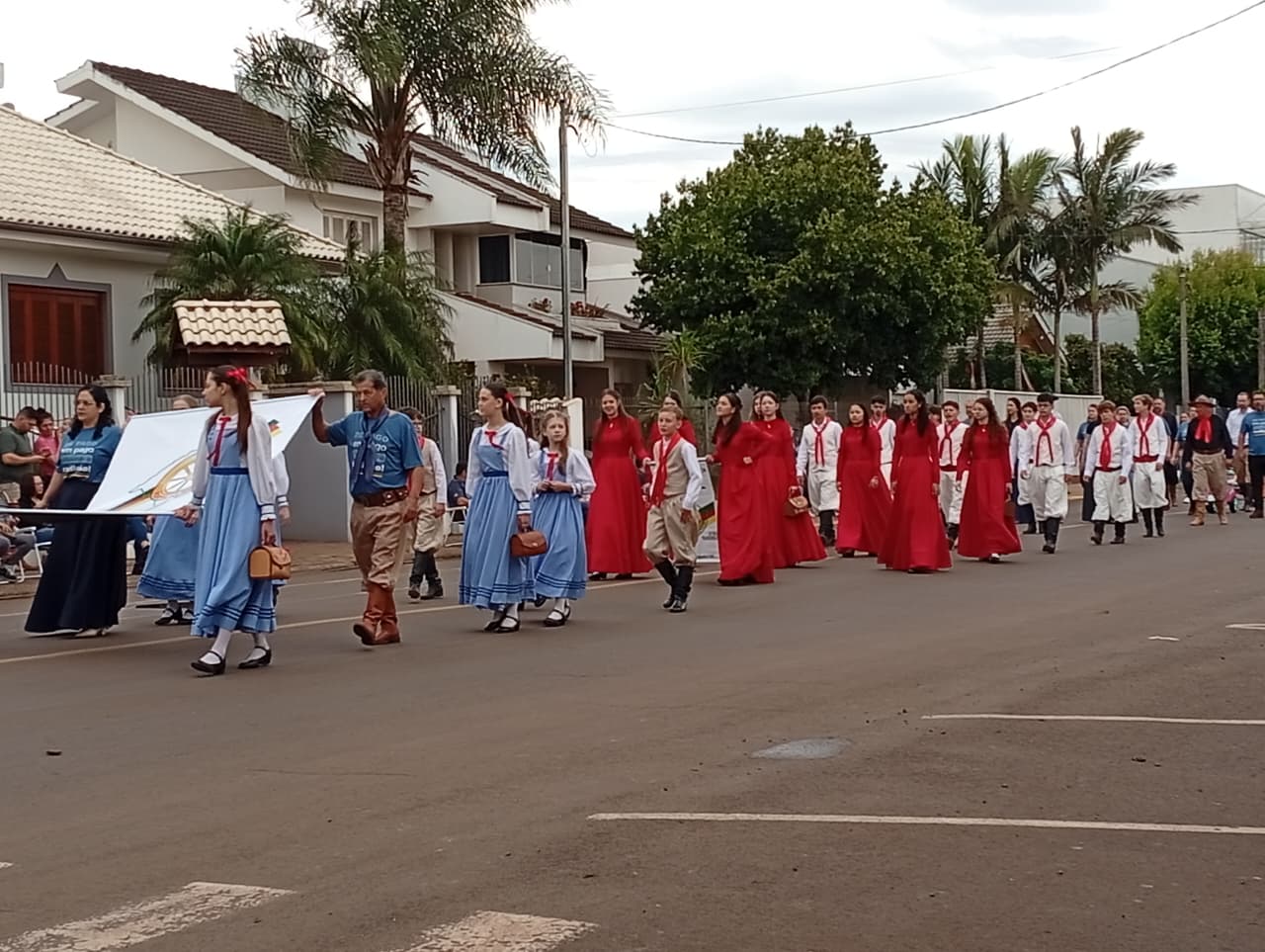 Tradicionalistas, comerciantes e a comunidade de Santo Augusto se reuniram neste 20 de setembro na Rua Rio Branco para celebrar o Dia do Gaúcho com o tradicional desfile farroupilha. O evento, que encerrou oficialmente as comemorações da Semana Farroupilha no município, contou com a presença de entidades tradicionalistas, empresas e famílias que prestigiaram a data.