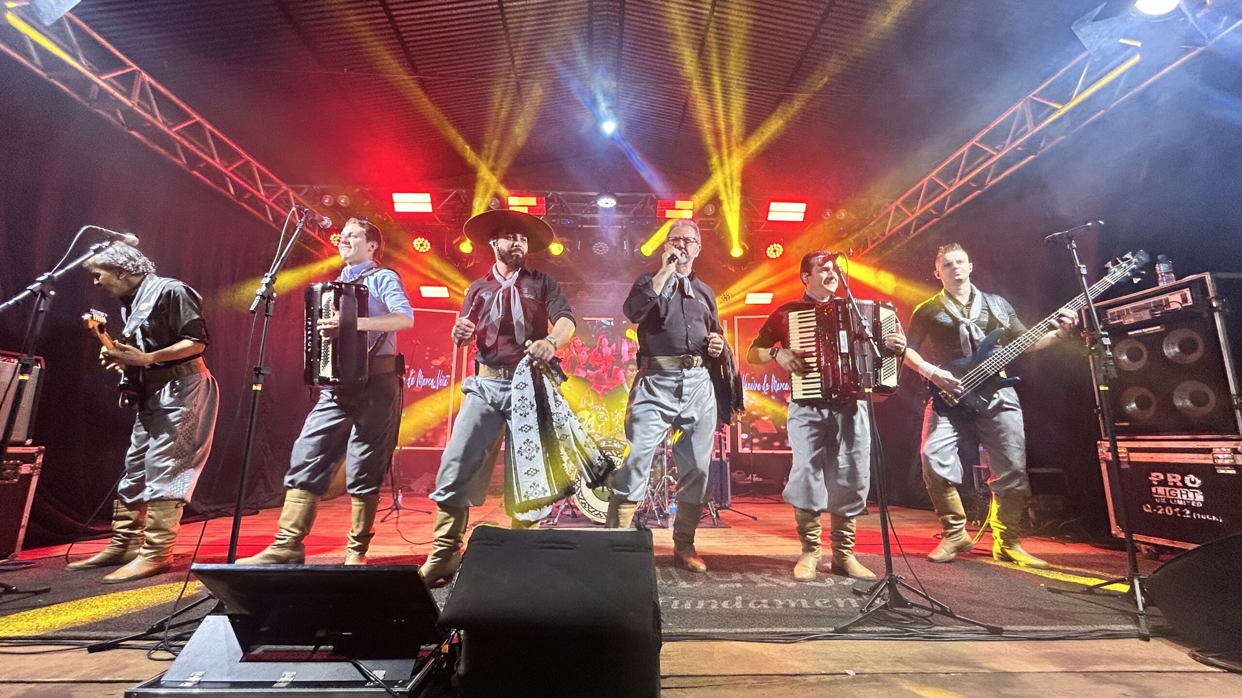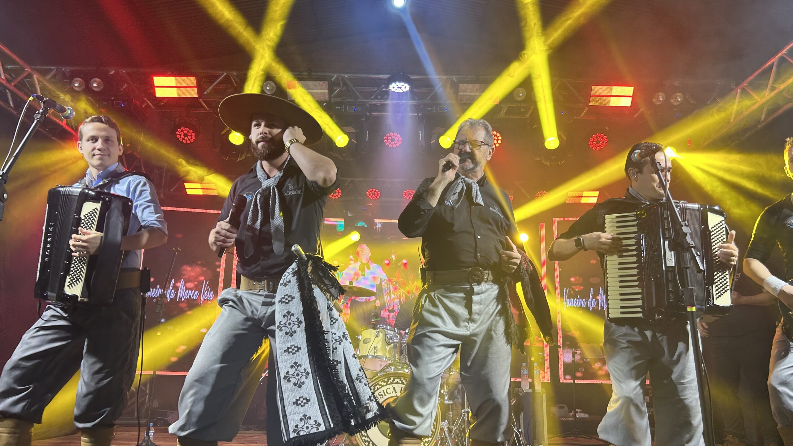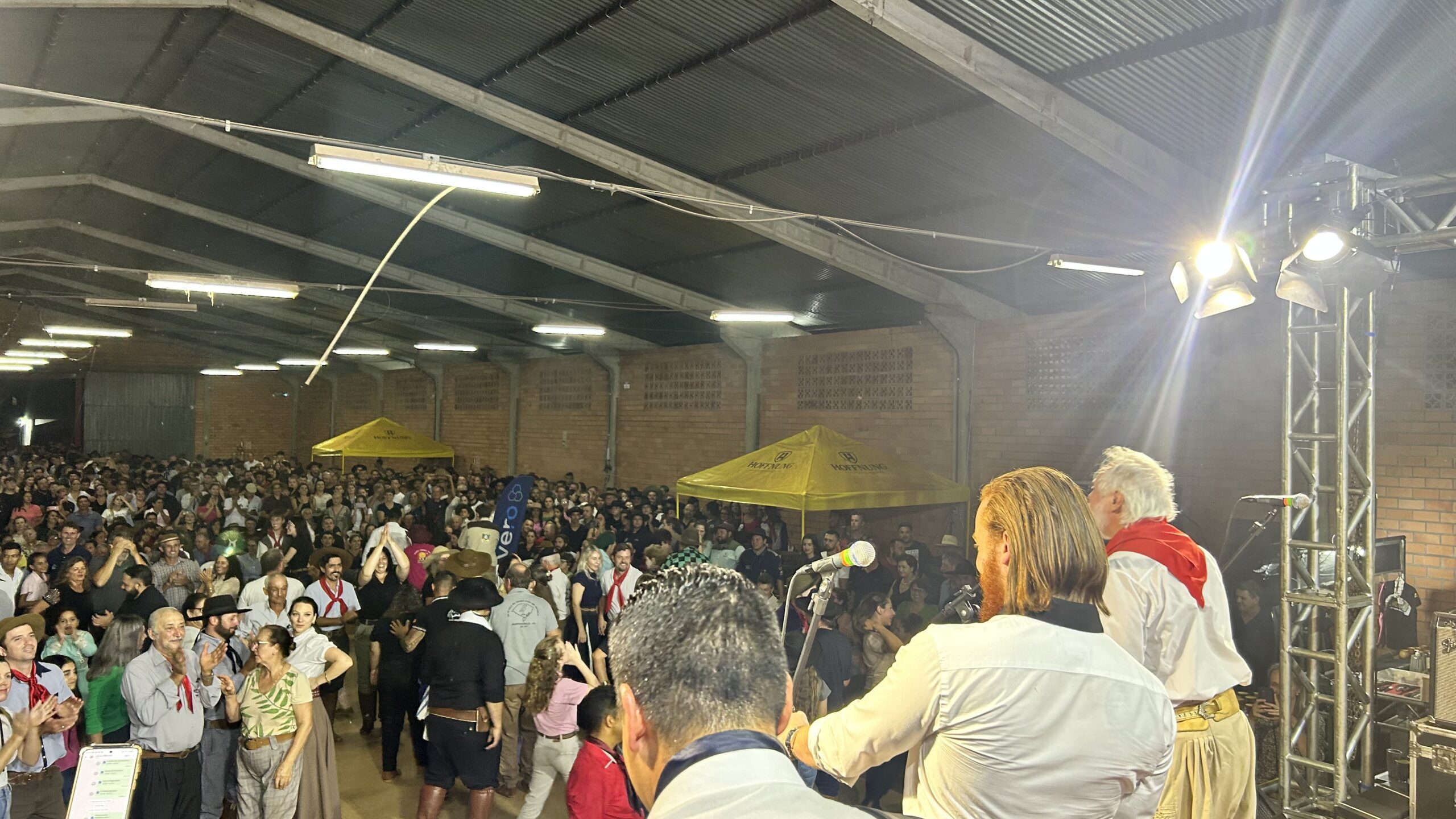 Na sequência, a animação continuou com o grupo Os Mateadores, que mantém uma trajetória de 40 anos de história na música regional. Com um repertório repleto de sucessos, o grupo levantou o público e manteve a energia do evento em alta, reafirmando o prestígio conquistado ao longo de quatro décadas.