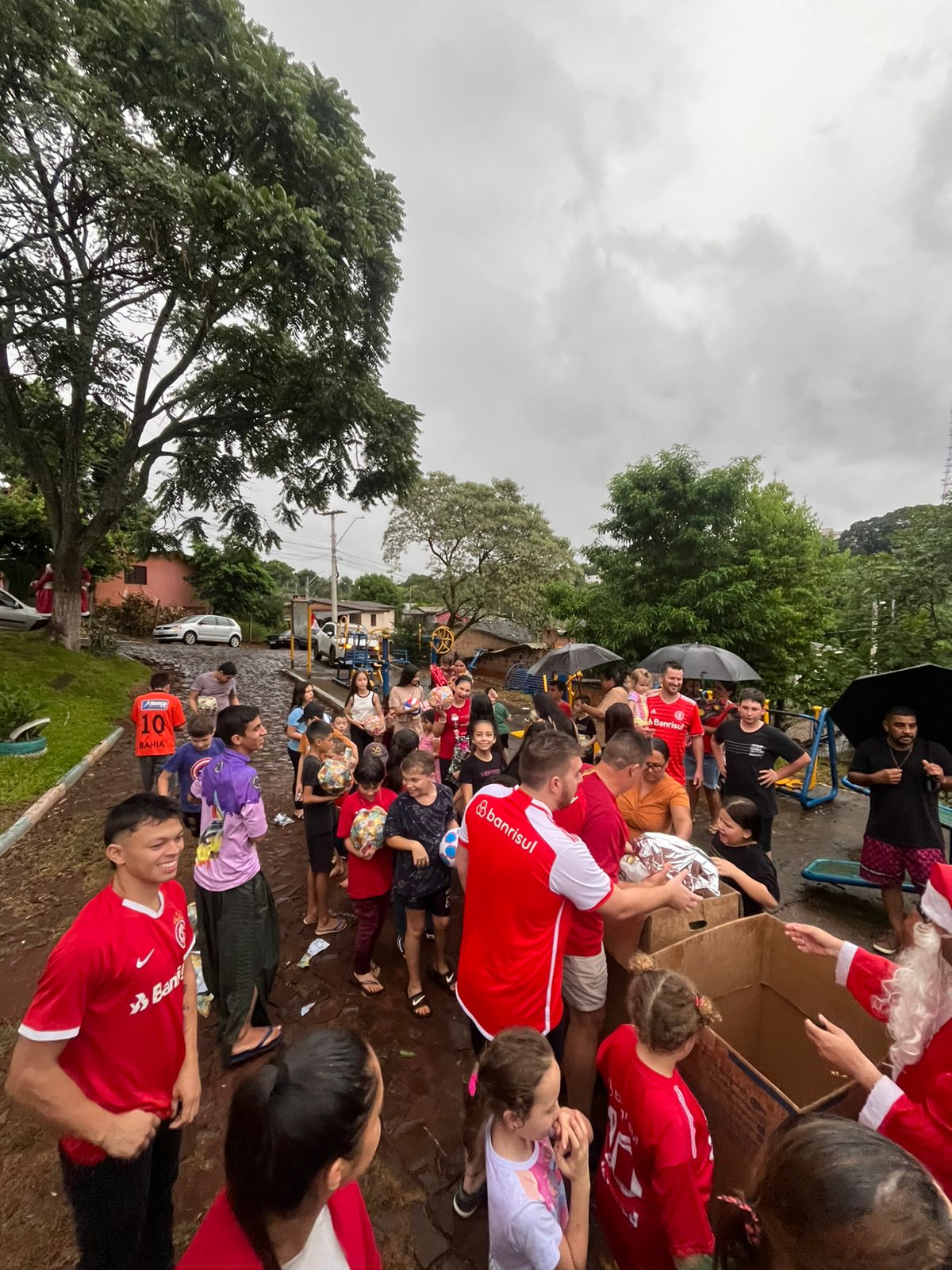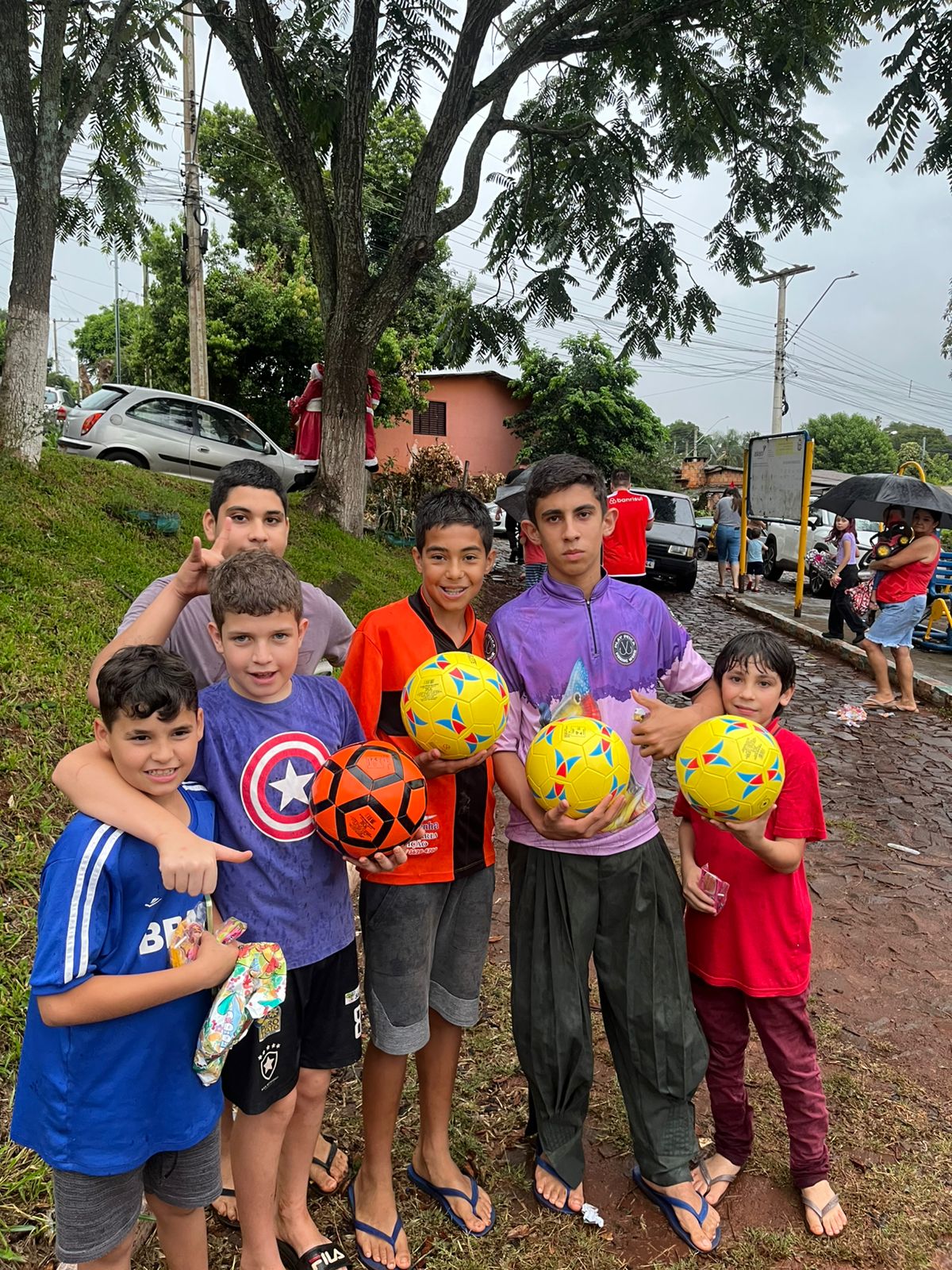 Mesmo com a chuva, o grupo não se intimidou e percorreu os bairros Santa Rita e São João, onde foram distribuídos doces, bolas e brinquedos às crianças. A iniciativa reforçou o espírito natalino e o compromisso social do Consulado Colorado com a comunidade santo-augustense.