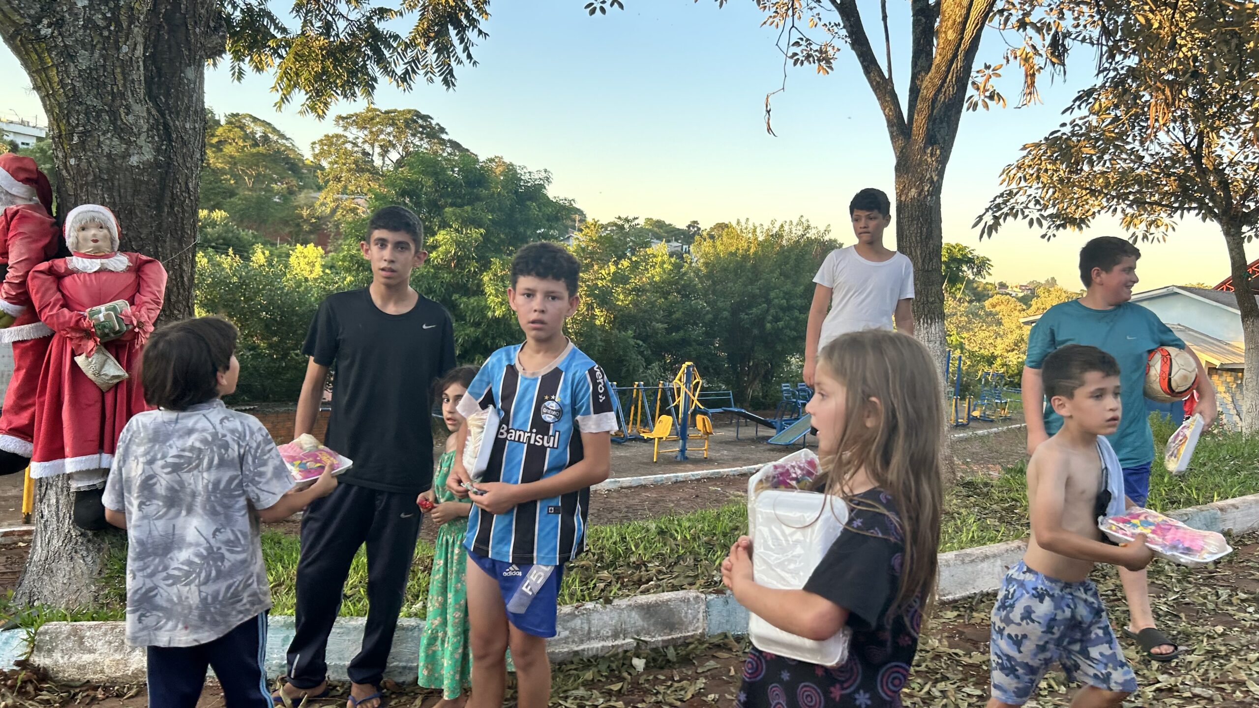 O Consulado Gremista de Santo Augusto concluiu com sucesso a ação social Natal Tricolor 2025, que resultou na entrega de 1.600 cestas com doces e salgados para crianças de todos os bairros do município. A iniciativa mobilizou torcedores, voluntários e apoiadores, levando alegria e espírito solidário às famílias santo-augustenses neste período de fim de ano.