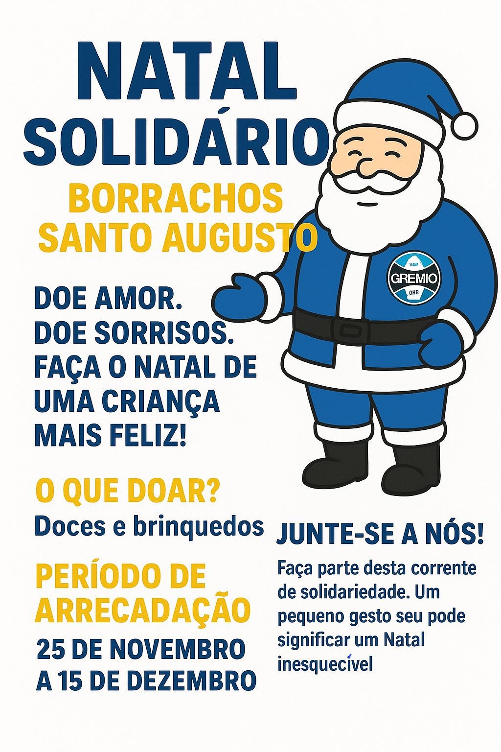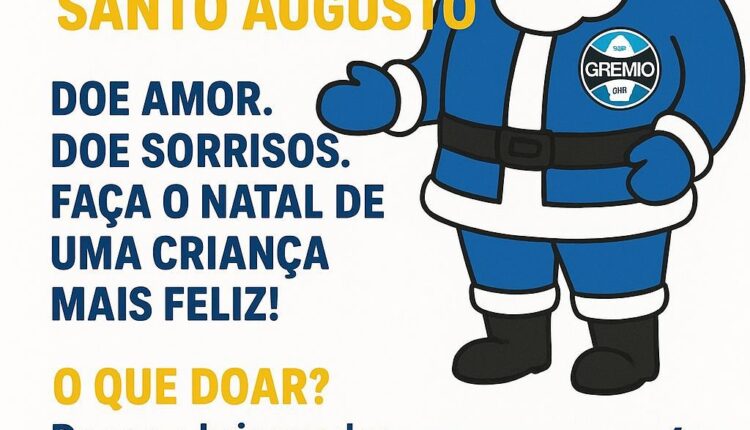 O Consulado reforça o convite aos gremistas e demais moradores para que participem da ação. “Cada contribuição ajuda a transformar o Natal de uma criança. Vamos juntos mostrar a força da nossa torcida também fora das arquibancadas”, destacam os organizadores.