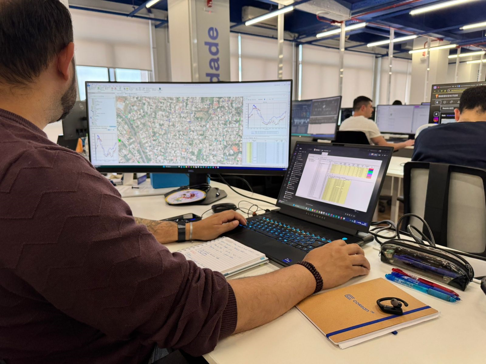 Essas informações são integradas a um software de simulação que reproduz o sistema real de abastecimento, reunindo indicadores como pressões, vazões, níveis dos reservatórios e consumo em tempo real. A tecnologia permite testar manobras e intervenções antes da execução prática, prever cenários, identificar possíveis falhas e otimizar a operação diária. Com isso, a Companhia consegue planejar expansões, reduzir perdas, melhorar a distribuição de água e apoiar decisões técnicas com mais precisão.