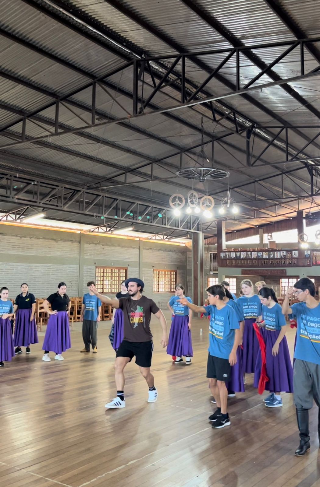 À frente dos trabalhos estão os instrutores Jean e Andrieli Huber, nomes reconhecidos no Movimento Tradicionalista Gaúcho (MTG). O casal acumula conquistas importantes, entre elas o título no ENART, na Força A de Danças Tradicionais, além de resultados expressivos no MateArte 2025, promovido pela 20ª Região Tradicionalista. Sob sua orientação, as invernadas Pré-Mirim, Mirim e Juvenil do CTG Pompílio Silva vêm conquistando troféus e elevando o nível técnico e artístico da entidade.