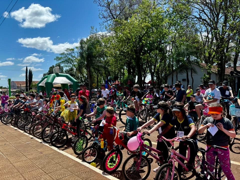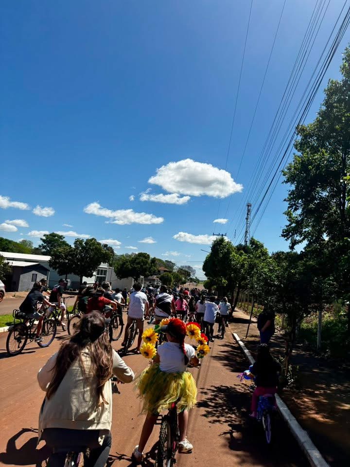 A programação contou com um passeio ciclístico que percorreu as ruas do município em um trajeto seguro e animado. Professoras caracterizadas com fantasias coloridas acompanharam o grupo, garantindo um clima de descontração e incentivo à prática esportiva. Além do passeio, a tarde contou com brinquedos infláveis, lanches gratuitos e sorteio de bicicletas e outros prêmios, atraindo famílias inteiras para a atividade.