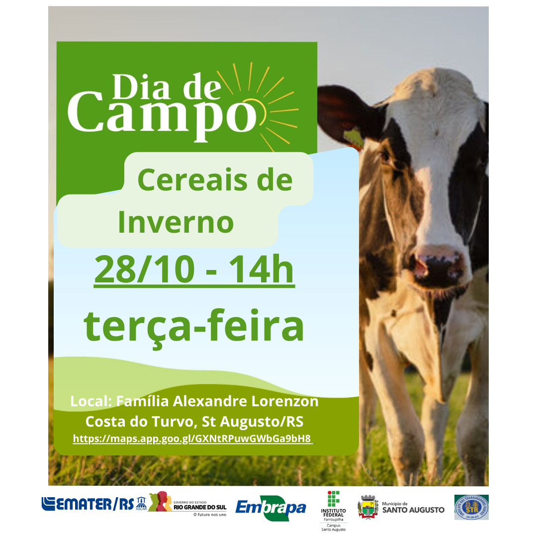 O evento é uma iniciativa conjunta da Emater/RS-Ascar, Embrapa e Instituto Federal Farroupilha – Campus Santo Augusto, e tem como objetivo apresentar aos produtores 16 materiais de cereais de inverno, entre eles cultivares de trigo, triticale, centeio, aveia e cevada, com diferentes finalidades — pastejo, silagem, pré-secado ou colheita de grãos.