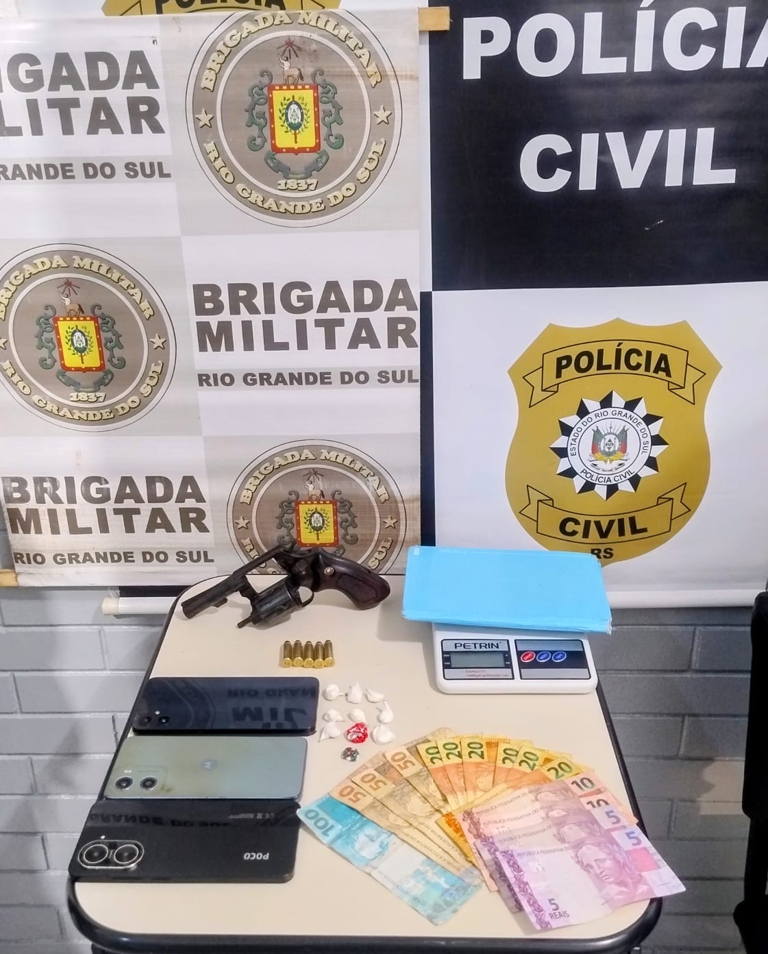 A abordagem foi realizada por uma equipe da Força Tática do 7º Batalhão de Polícia Militar (7º BPM), que efetuou a revista pessoal nos suspeitos. Durante a ação, os policiais localizaram e apreenderam 10 porções de cocaína, um revólver calibre .38 e cinco munições, além de três aparelhos celulares, uma balança de precisão, um caderno com anotações e uma quantia em dinheiro.