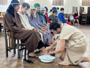 Em uma tradição que já se estende por três anos consecutivos, a comunidade da Capela Nossa Senhora Aparecida de Santo Augusto se reúne para uma comovente encenação da Paixão, Morte e Ressurreição de Jesus. Sob os holofotes do salão da capela, a história sagrada ganha vida através do empenho de cerca de 45 participantes, entre membros dos grupos Jovens em Busca da Santidade (JBS), do Curso de Liderança Juvenil (CLJ), coroinhas e voluntários, e coordenação do cônego Jocemar Fontana.