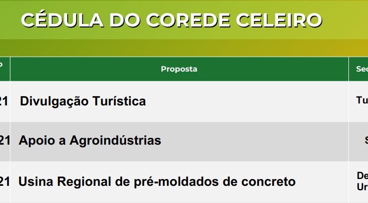 Neste ano, a cédula do Corede Celeiro apresenta três propostas, e as duas mais votadas serão contempladas. As opções são: