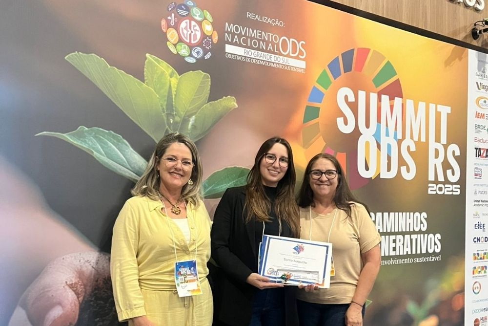 A Escola Municipal de Ensino Fundamental Sol Nascente, de Santo Augusto, conquistou o 1º lugar estadual no Prêmio ODS RS 2025, promovido pelo Movimento Nacional ODS Rio Grande do Sul. A premiação ocorreu na tarde de sexta-feira (17), na PUCRS, em Porto Alegre, durante o Summit ODS RS 2025, evento que reuniu lideranças e instituições comprometidas com os Objetivos de Desenvolvimento Sustentável da ONU.