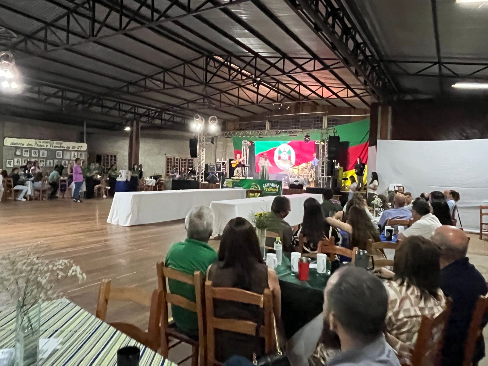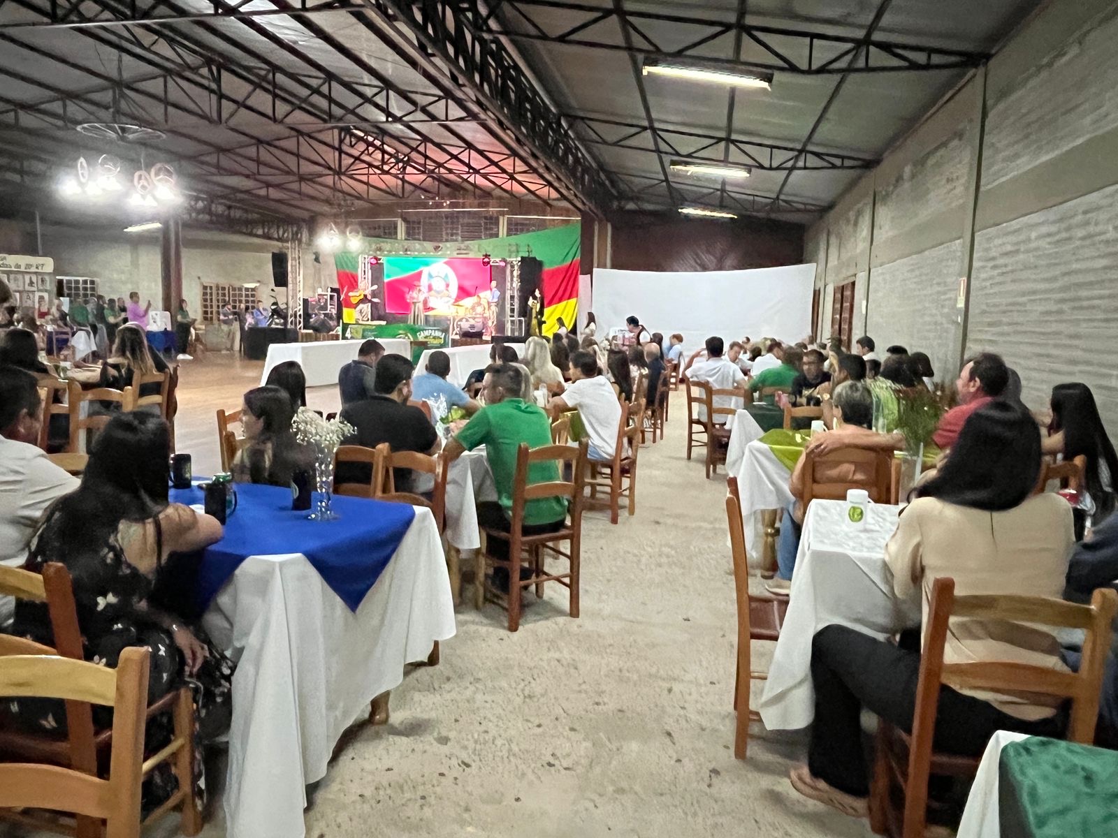 A noite seguiu com atrações culturais. Às 22h, o público acompanhou o show nativista “Mariana Marques – Canta Raiz”, que trouxe músicas ligadas à cultura gaúcha. Encerrando a programação, o baile animado pela Banda Karybe garantiu a animação dos convidados até o final da noite.
