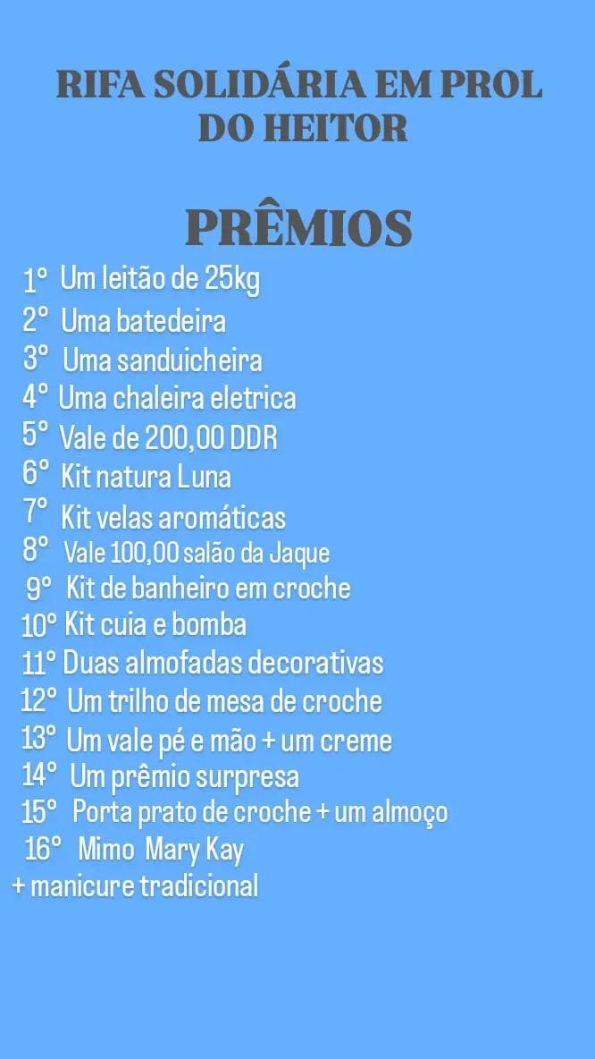 “Quem não puder colaborar comprando a rifa, pedimos que coloque o Heitor em suas orações,” disse Camila. “Qualquer ajuda fará diferença neste momento tão importante.”