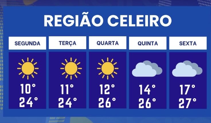 Na terça-feira, o clima segue semelhante, com mínima de 11°C e máxima de 24°C, mantendo o tempo firme.