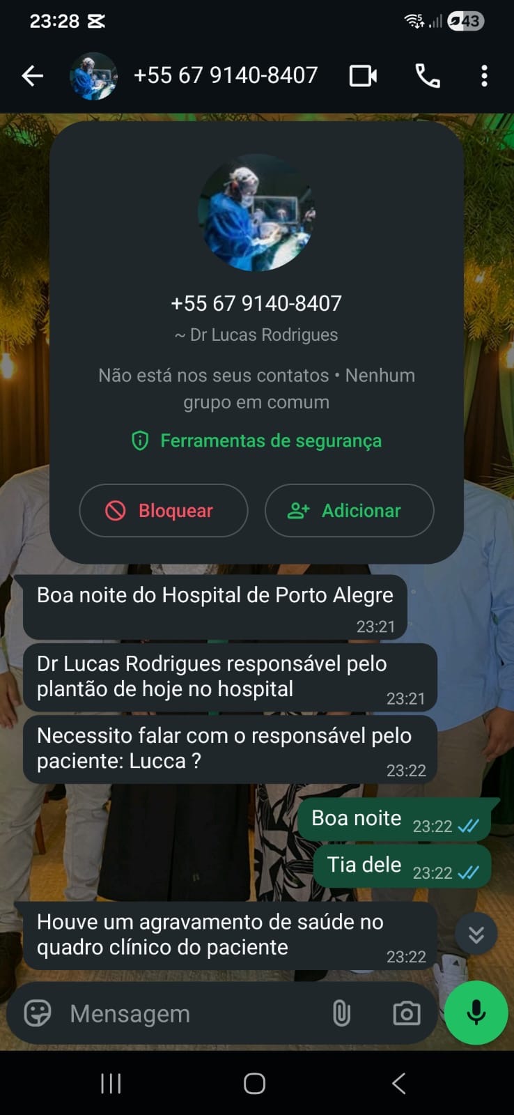 Conforme relato da família, as mensagens e ligações pedem transferências sob a justificativa de custos médicos urgentes. No entanto, os familiares reforçam que se trata de um golpe e que não há qualquer cobrança feita pela equipe médica responsável pelo atendimento do bebê.