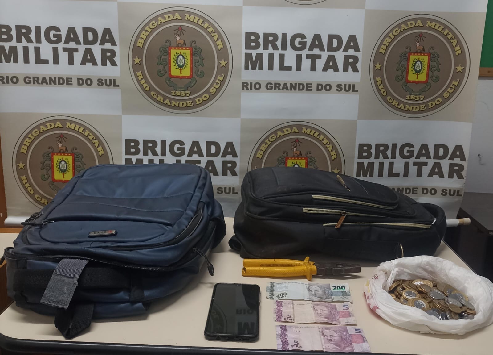 Durante as buscas, o celular foi encontrado em uma área de mata. No local, os policiais abordaram um suspeito que foi reconhecido como autor do crime. Com ele, foram apreendidas mochilas contendo dinheiro, ferramentas e outros objetos furtados, identificados pela vítima.