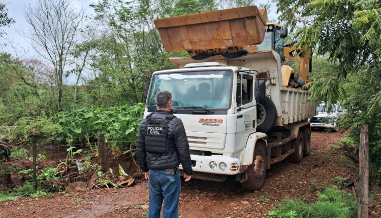Durante a ação, foram localizados um caminhão e uma retroescavadeira que constavam como furtados/roubados, ambos no pátio de uma residência da região.
