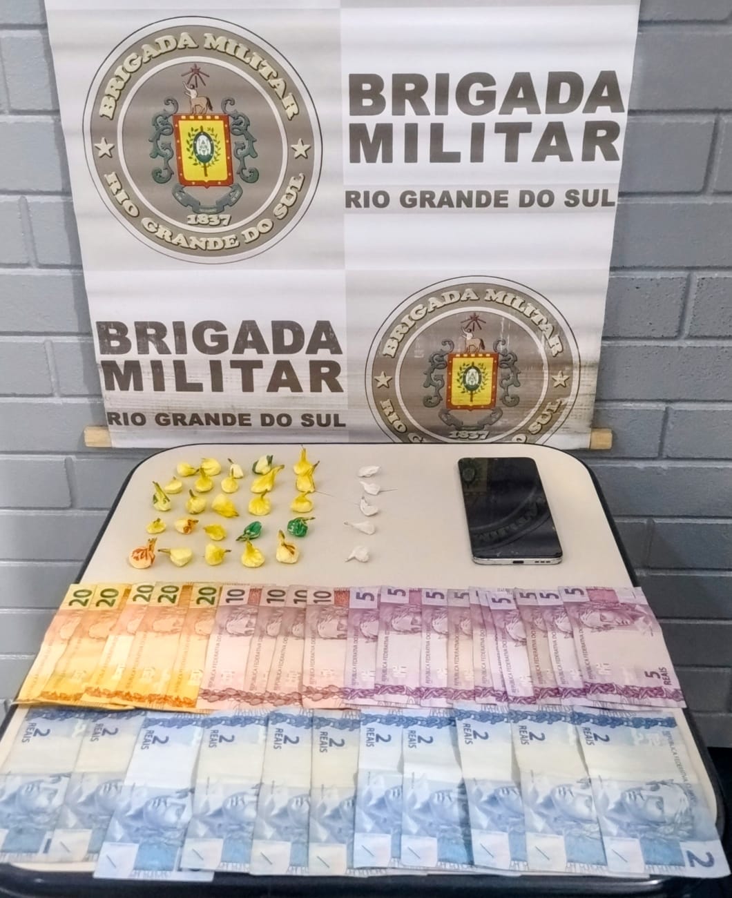 O suspeito recebeu voz de prisão e foi encaminhado à Delegacia de Polícia para a lavratura do auto de prisão em flagrante. A Brigada Militar segue intensificando as ações de combate ao tráfico de entorpecentes na região.