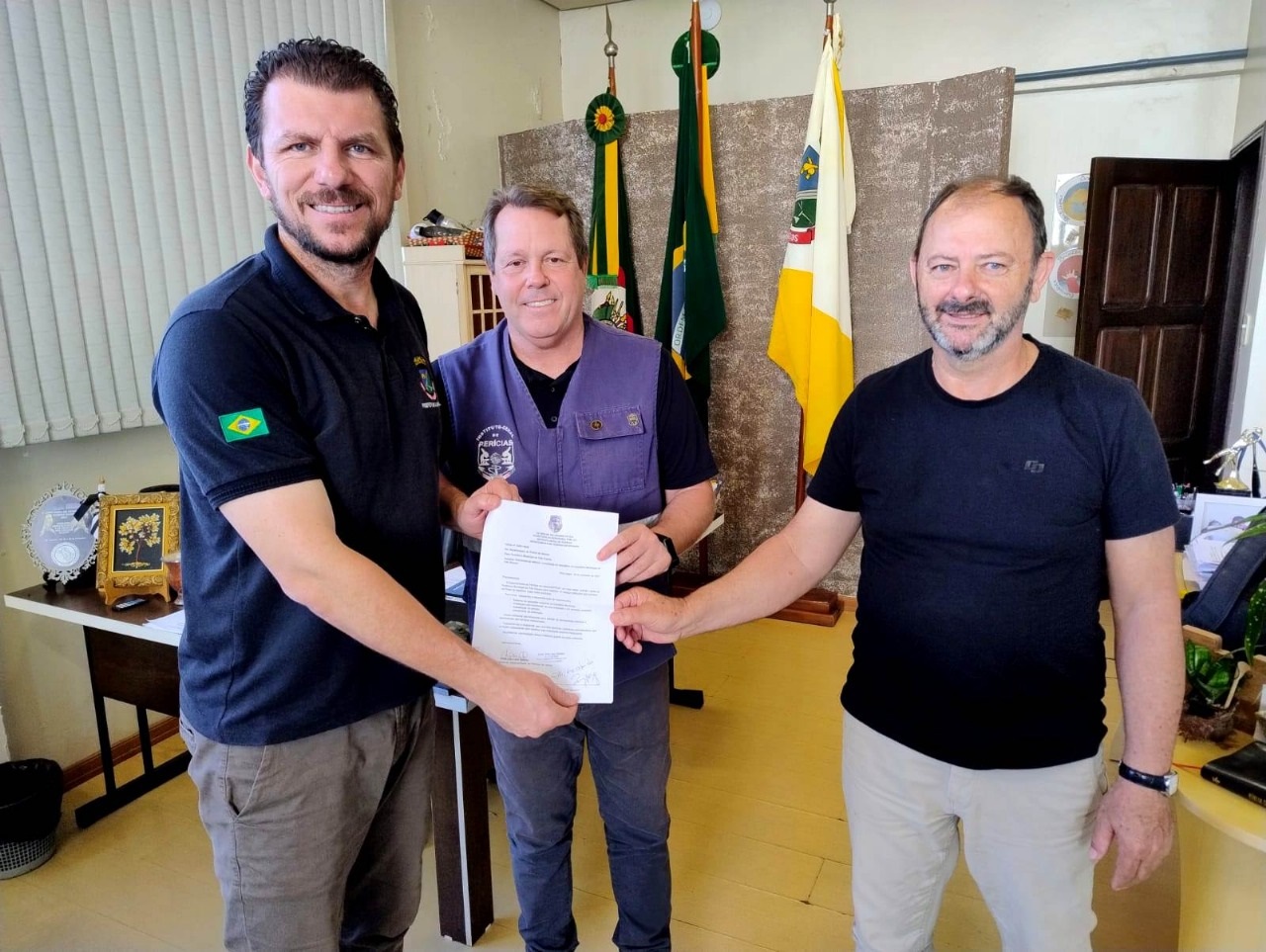 No dia 25 de novembro, o prefeito em exercício de Três Passos, Rodrigo Ipê, recebeu em seu gabinete o coordenador substituto do Instituto Geral de Perícias (IGP) da 6ª Coordenadoria Regional de Perícias (CRP), Alexandre Raupp Rotta. A reunião contou também com a presença do secretário municipal de Obras e Viação, Gelson Getelina.
