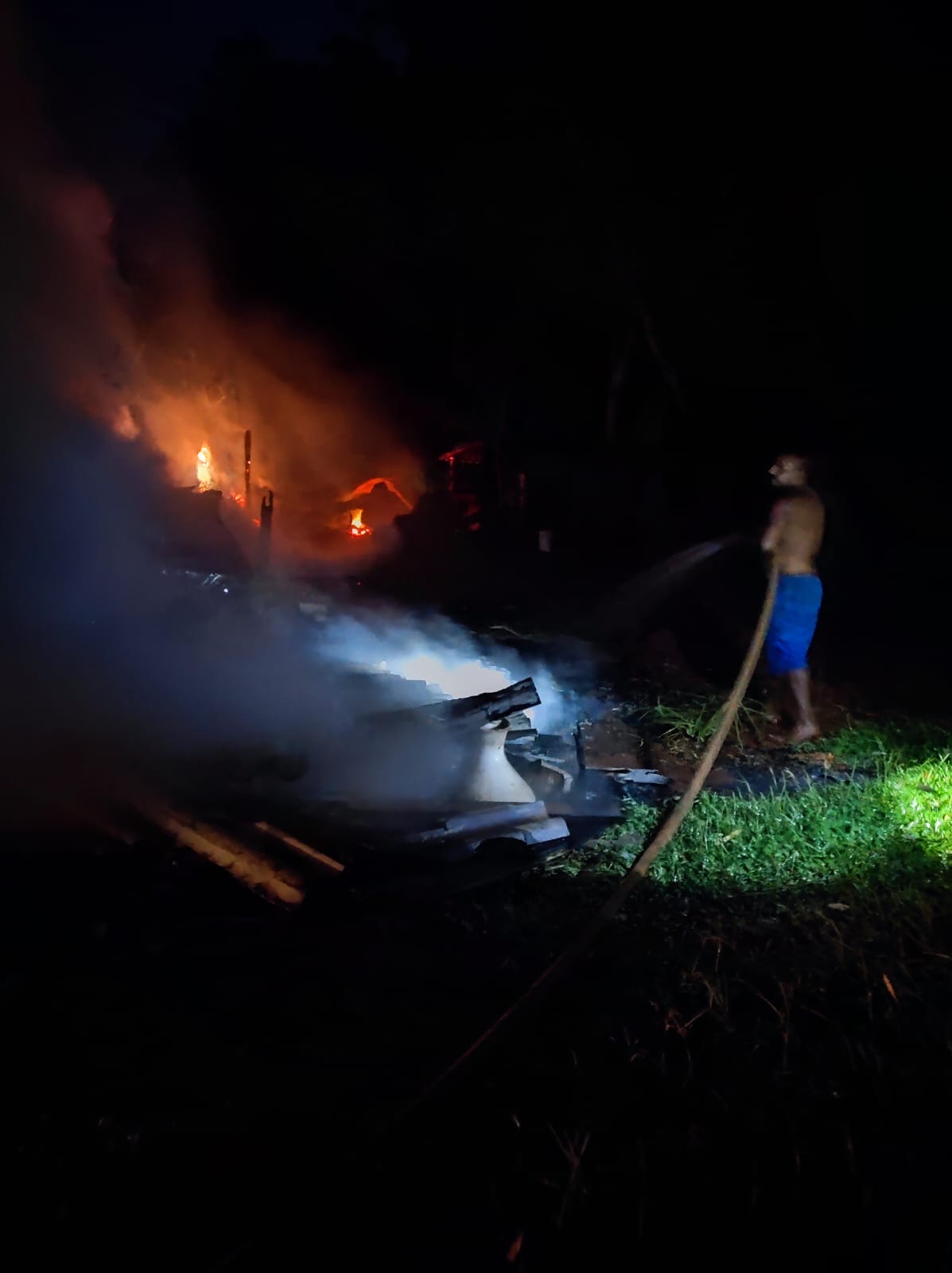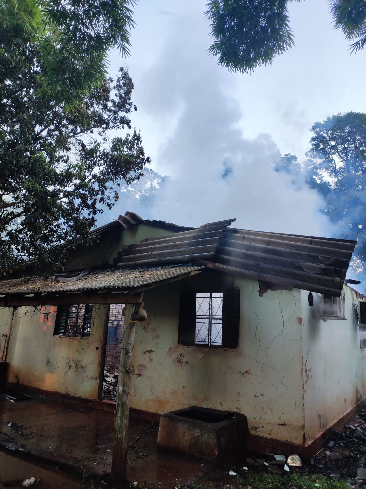 A residência ficou praticamente destruída pelo incêndio. Durante a ocorrência, também houve danos em estruturas próximas e um animal que estava em um chiqueiro nos fundos da propriedade acabou sendo atingido pelas chamas. Familiares e moradores da região ainda tentaram ajudar no resgate de animais e no controle do fogo até a chegada das equipes de emergência.