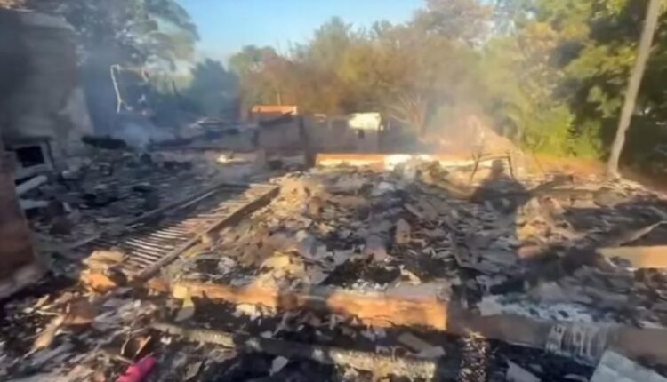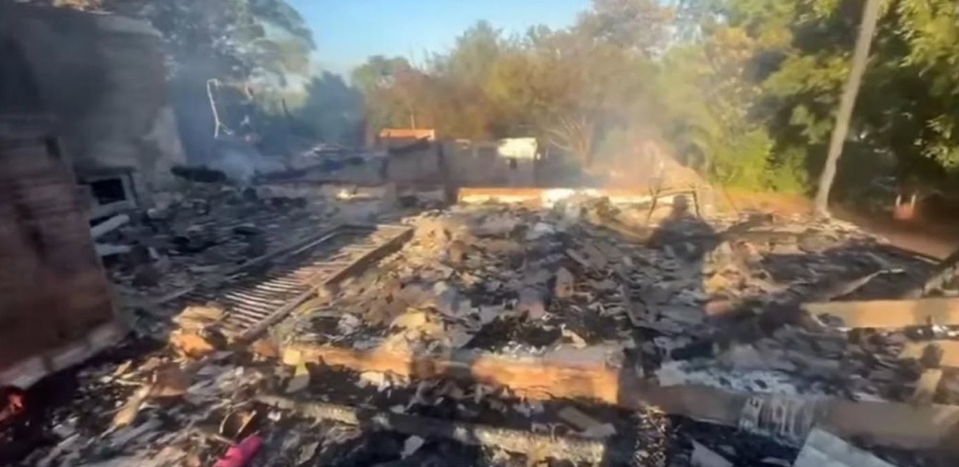 Uma residência foi completamente destruída por um incêndio registrado na madrugada desta terça-feira (6), na localidade de Linha Progresso, no interior do município de Miraguaí.