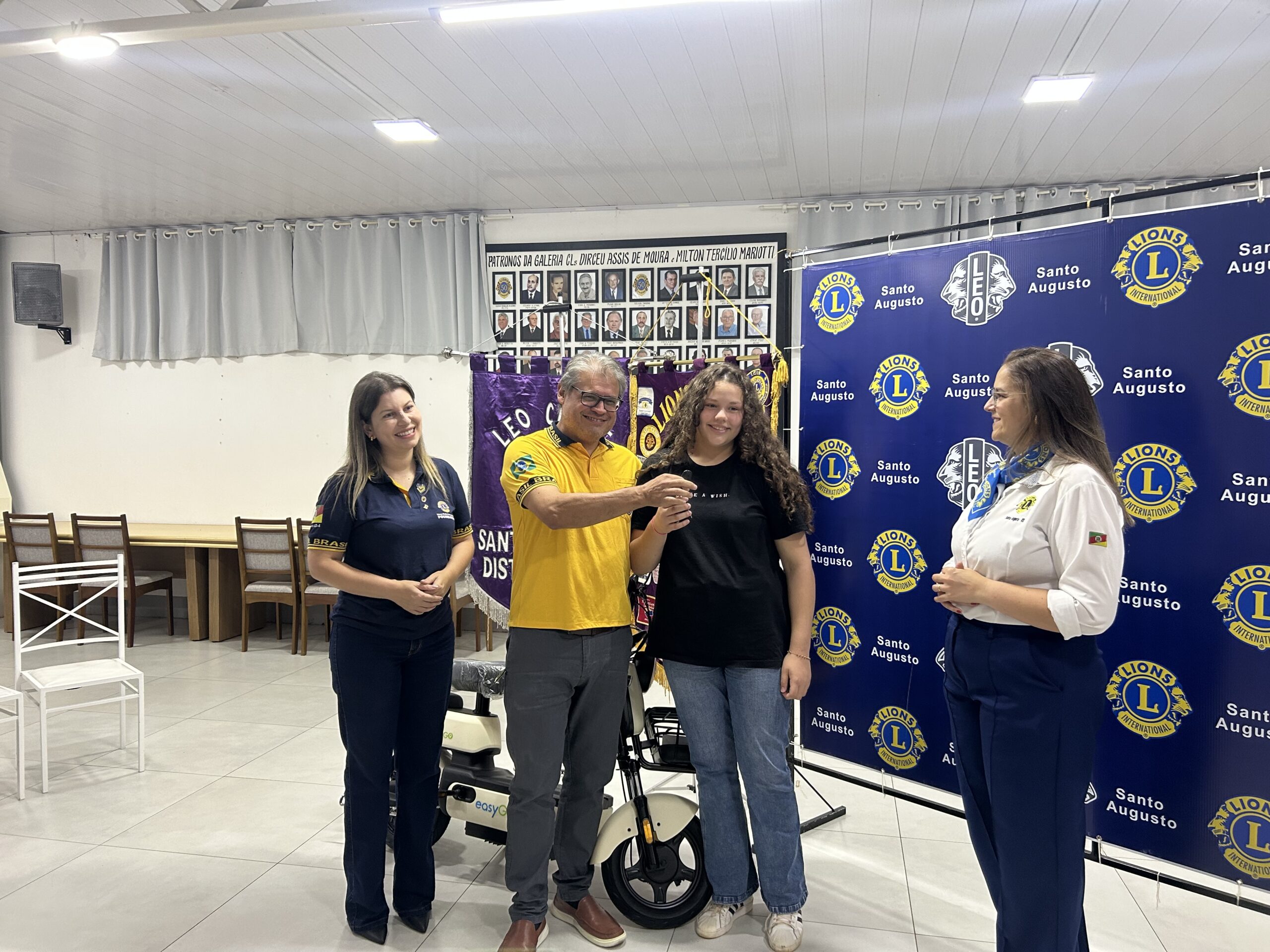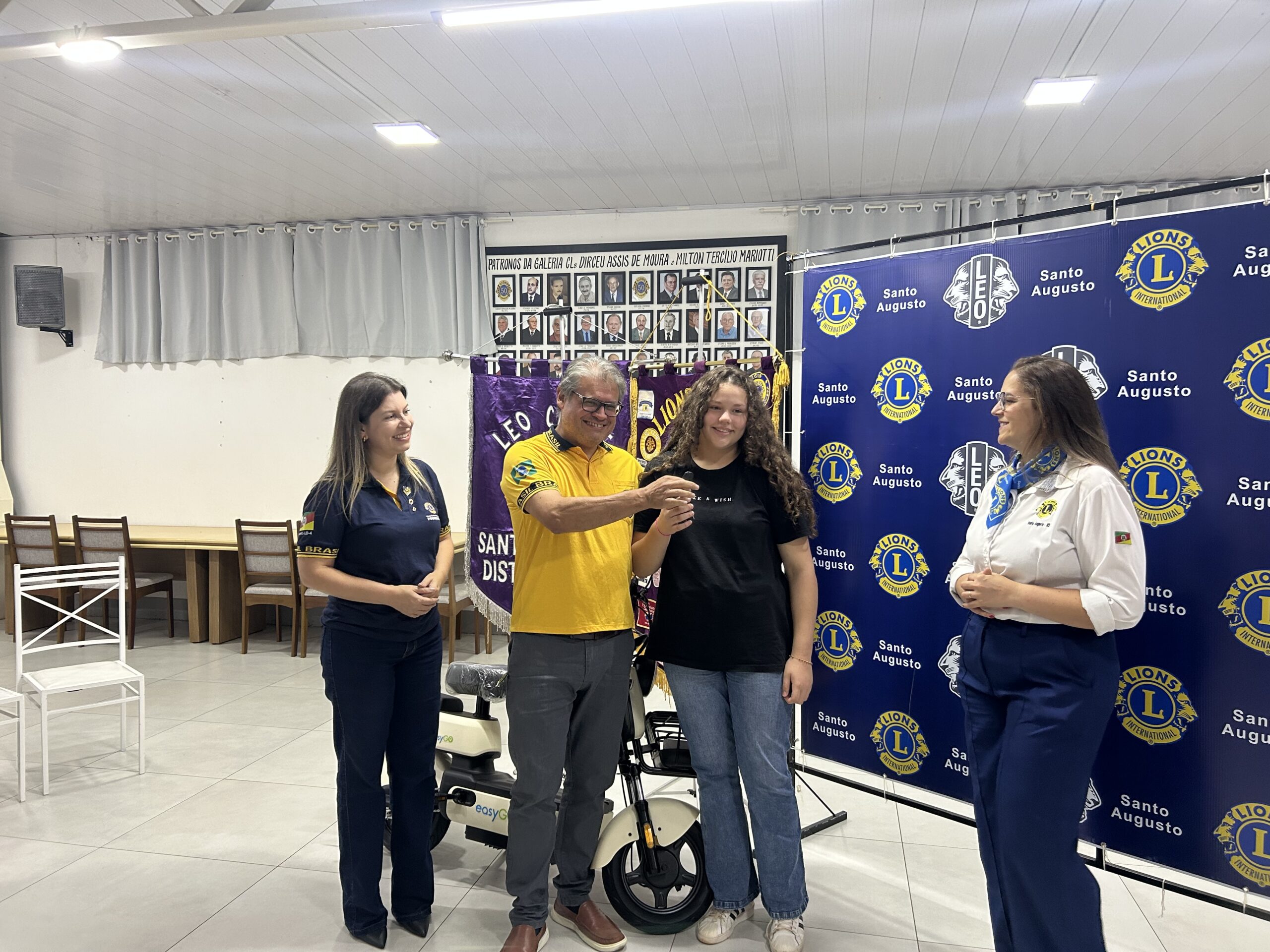 No município de Santo Augusto, o destaque foi a contemplação da jovem Ana Clara Savian Motta, vencedora do 1º prêmio, uma scooter elétrica. A entrega do prêmio foi realizada na sede do Lions Clube Santo Augusto, nesta quarta-feira, 22 de abril, em um momento marcado por alegria e gratidão.