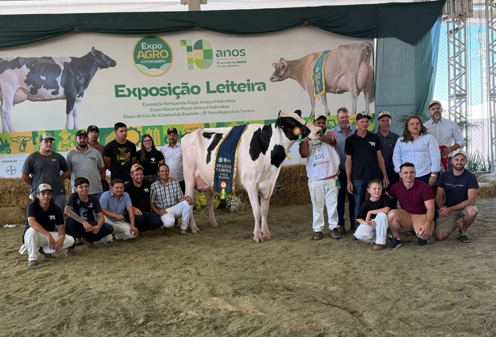 O sábado, 28 de fevereiro, considerado o Dia do Leite na ExpoAgro Cotricampo, foi marcado pela divulgação das campeãs do Concurso Leiteiro e pelo julgamento oficial da raça Holandesa na Arena Bovinos, em Campo Novo. A etapa integrou o circuito Exceleite, promovido pela Associação dos Criadores de Gado Holandês do Rio Grande do Sul (Gadolando). Segundo informações, mais de 180 animais das raças Jersey e Holandesa estiveram em exposição nesta décima edição da feira, consolidando o evento como vitrine técnica da pecuária leiteira gaúcha.